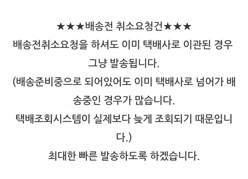매장업무, 고객응대, 택배업무로 인해 다소 답변이 늦어질 수 있는 점 양해 부탁드립니다.