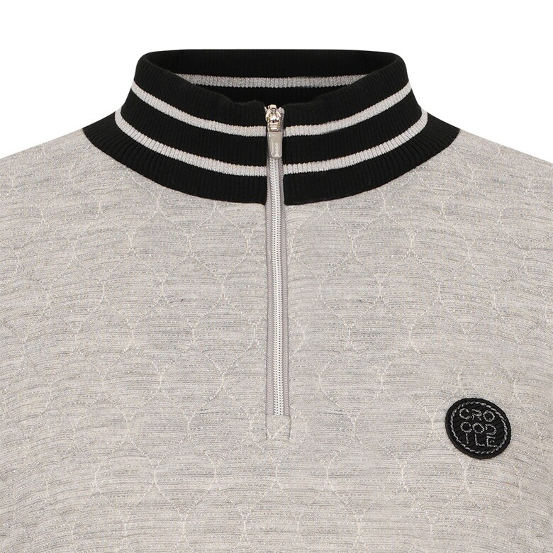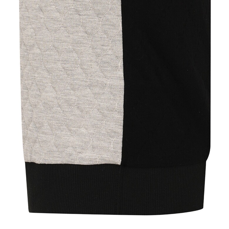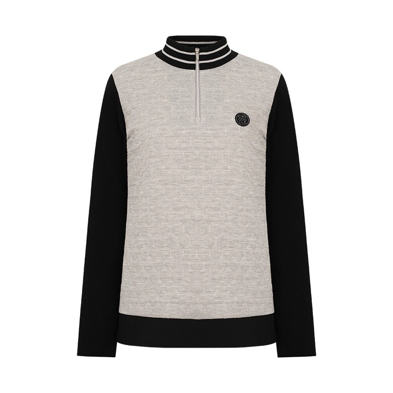 몸판 AR 로고 자가드와 앞판 누빔 자카드를 믹스매치한 것이 포인트로 에리 메탈요꼬 또한 세련되면서도 캐주얼한 반집업 티셔츠
