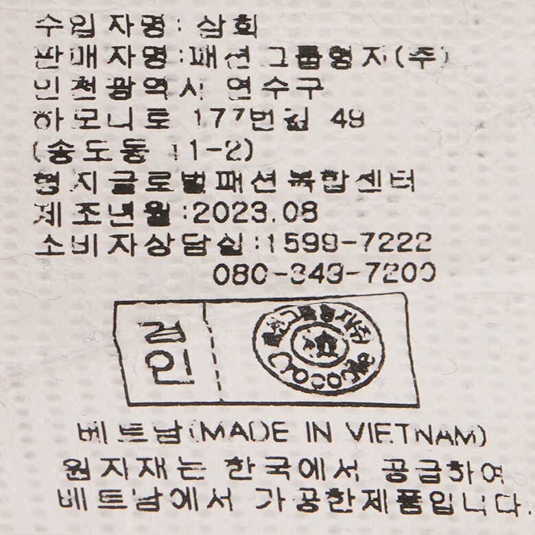 | 1. 제품 소재 (섬유의 조성 또는 혼용률을 백분율로 표시, 기능성인 경우 성적서 또는 허가서) | 상품상세참조 |
