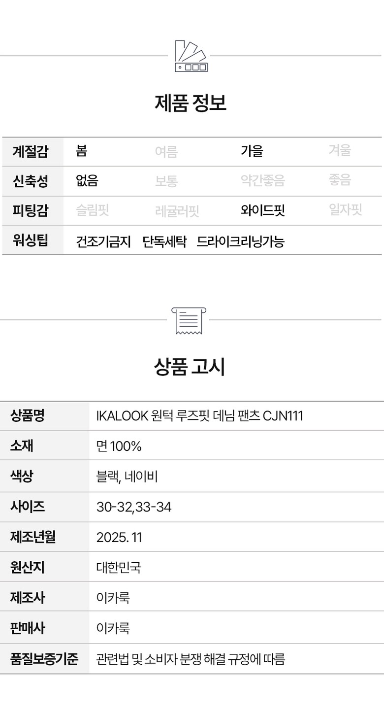 IKALOOK 원턱 루즈핏 데님 팬츠 CJN111