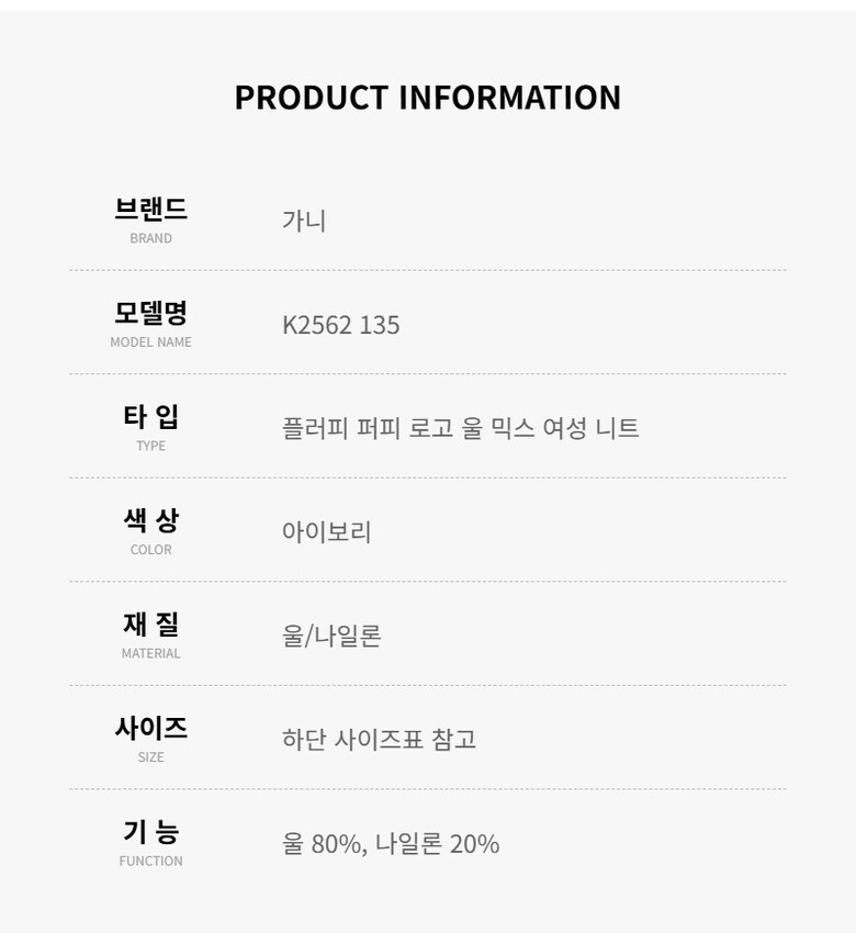 가니 니트 K2562 135 플러피 퍼피 로고 울 믹스 여성니트 당일발송