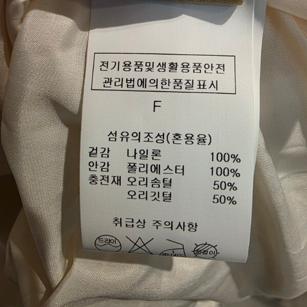 제품소재 : 겉감 나일론 100% / 안감 폴리에스터 100% / 충전재 오리솜털 50% 오리깃털 50%