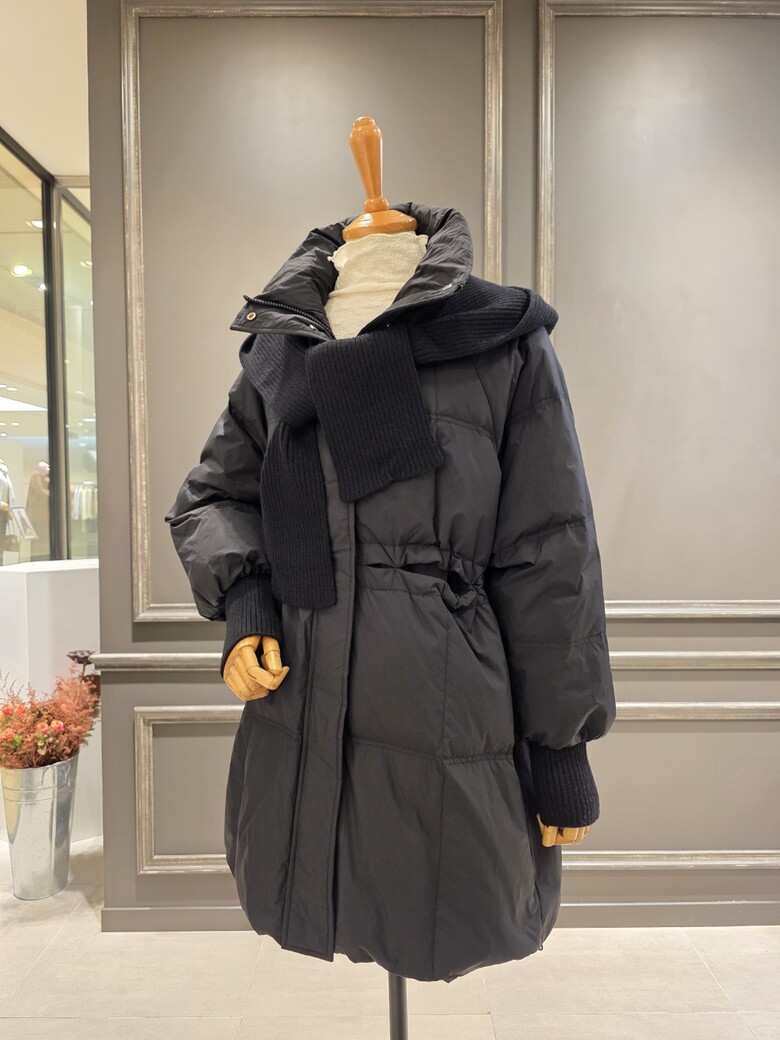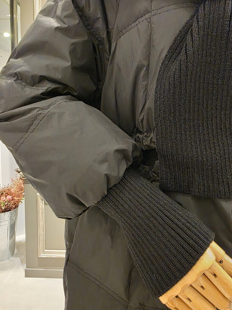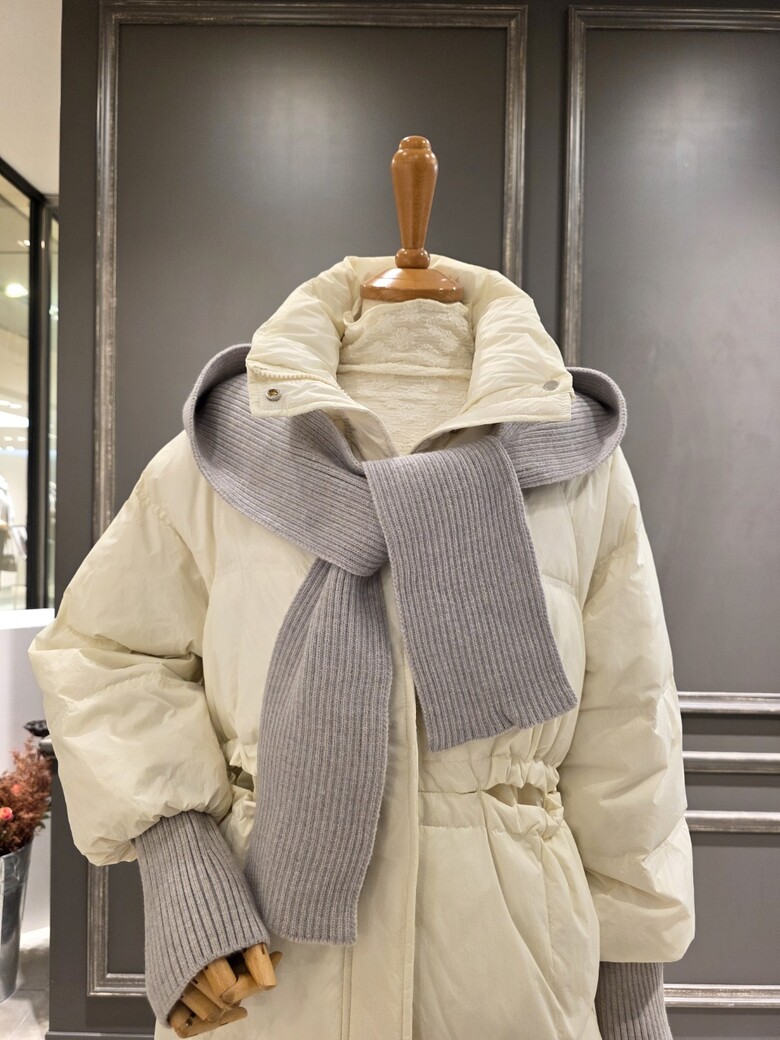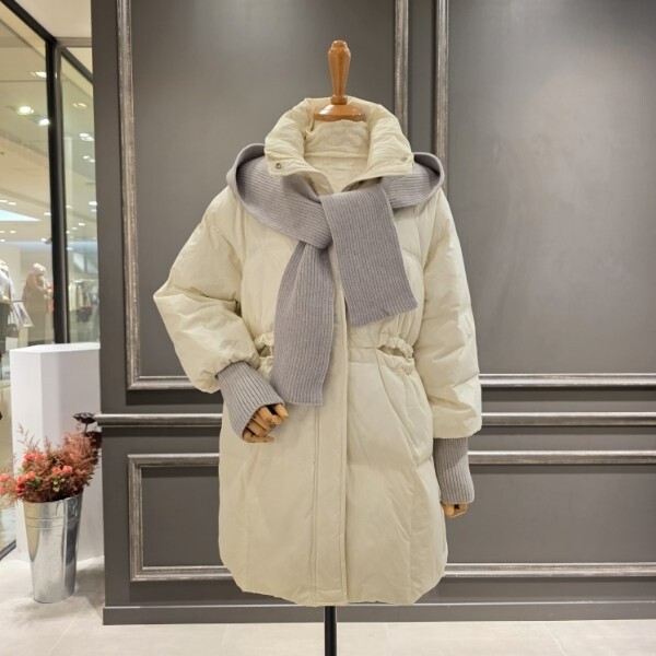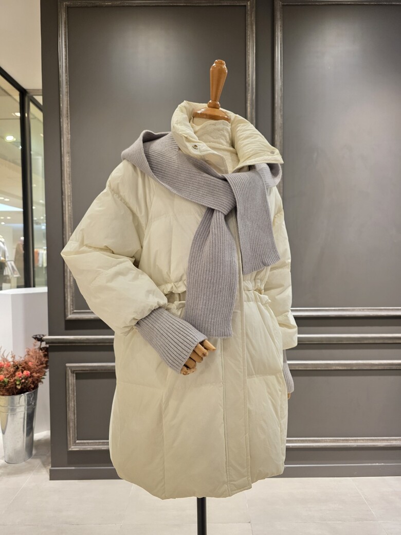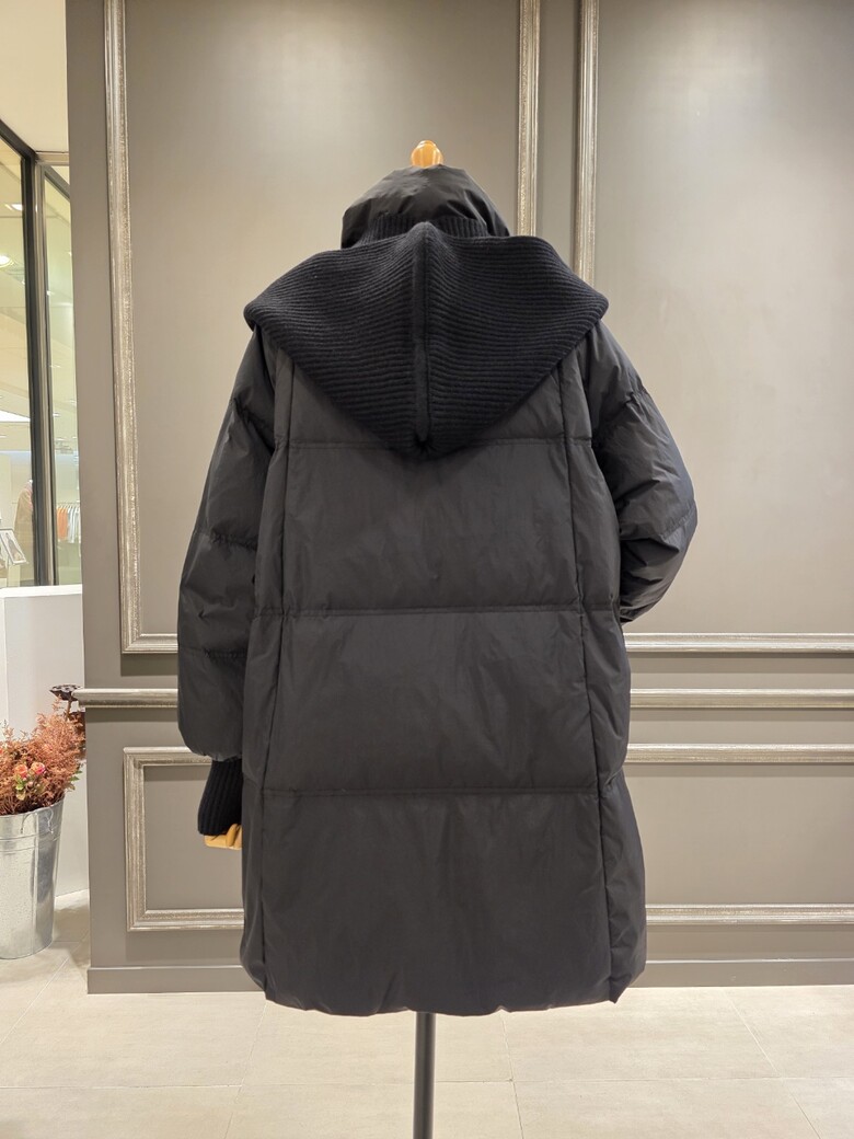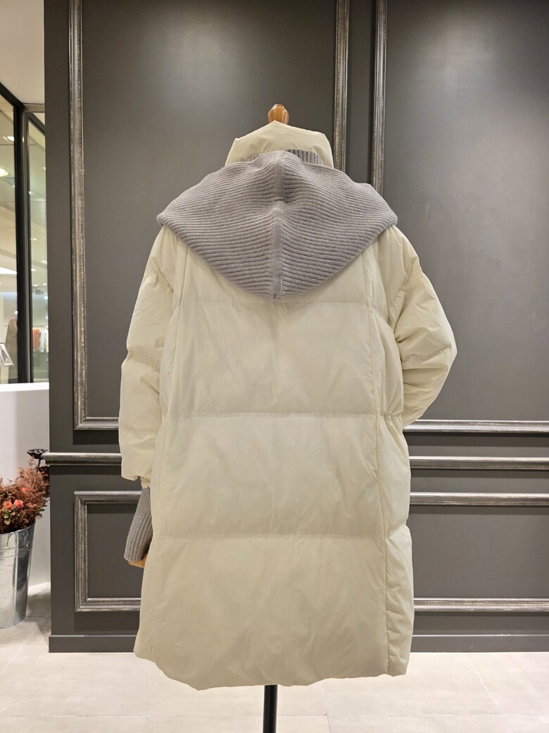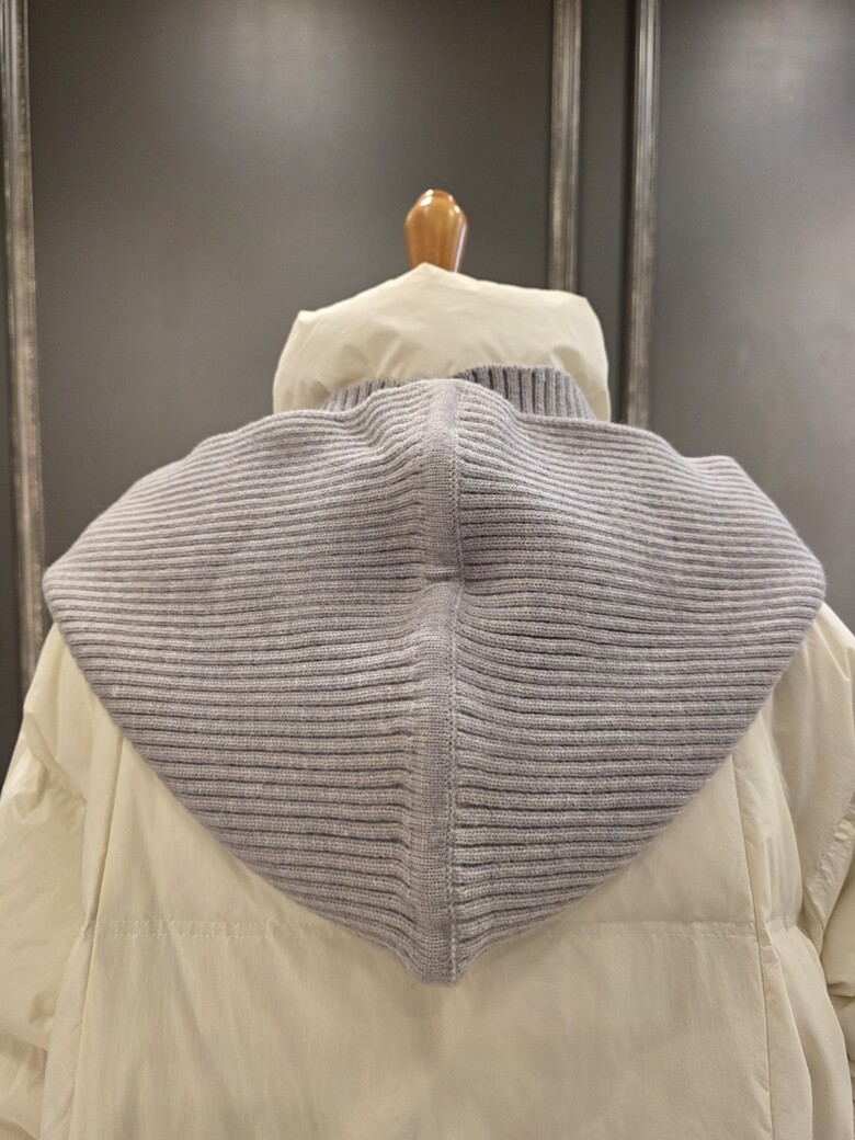 바라클라바와 소매는 니트소재로 배색 되어 있으며 충전재는 덕다운을 사용하여