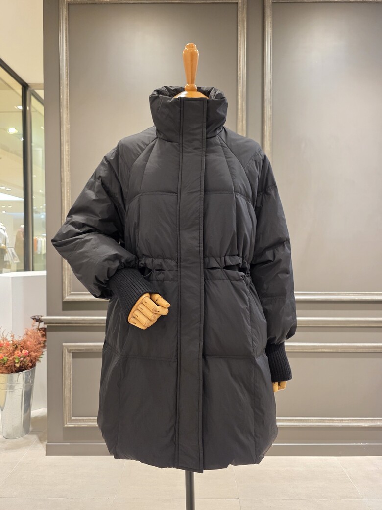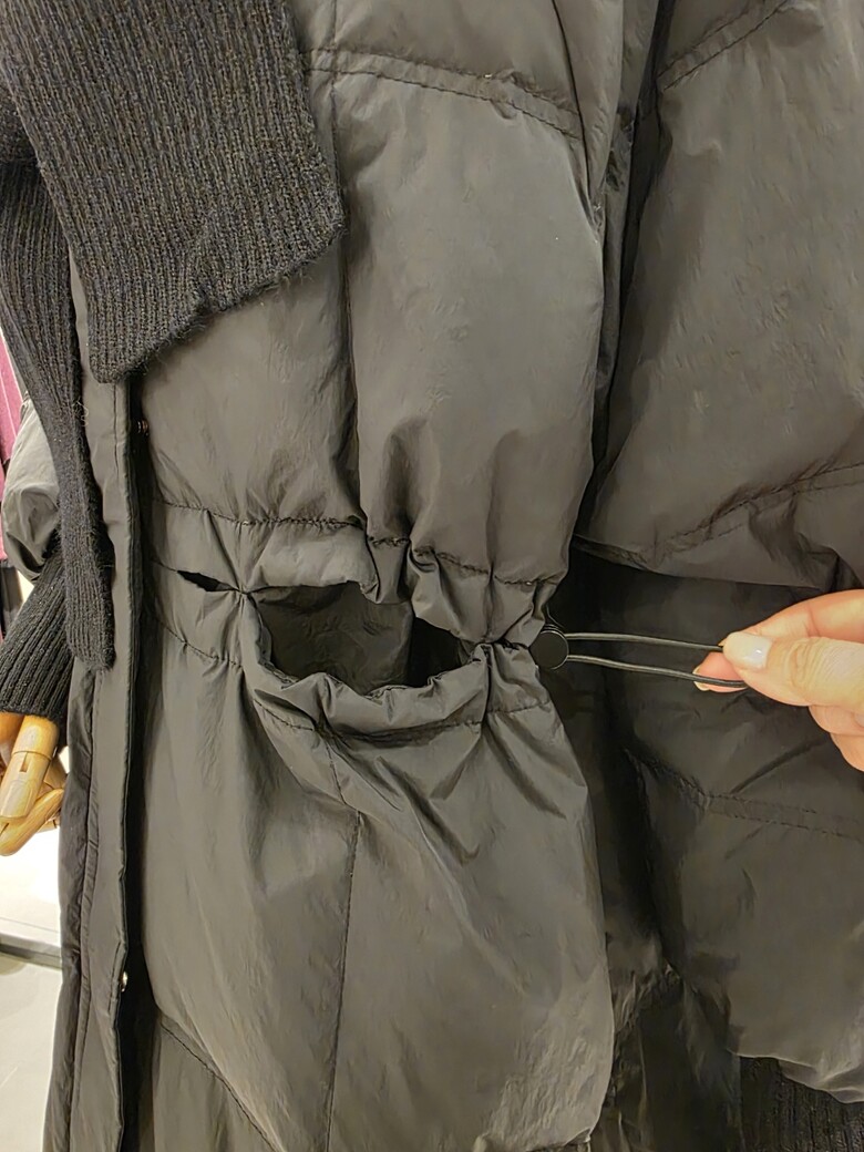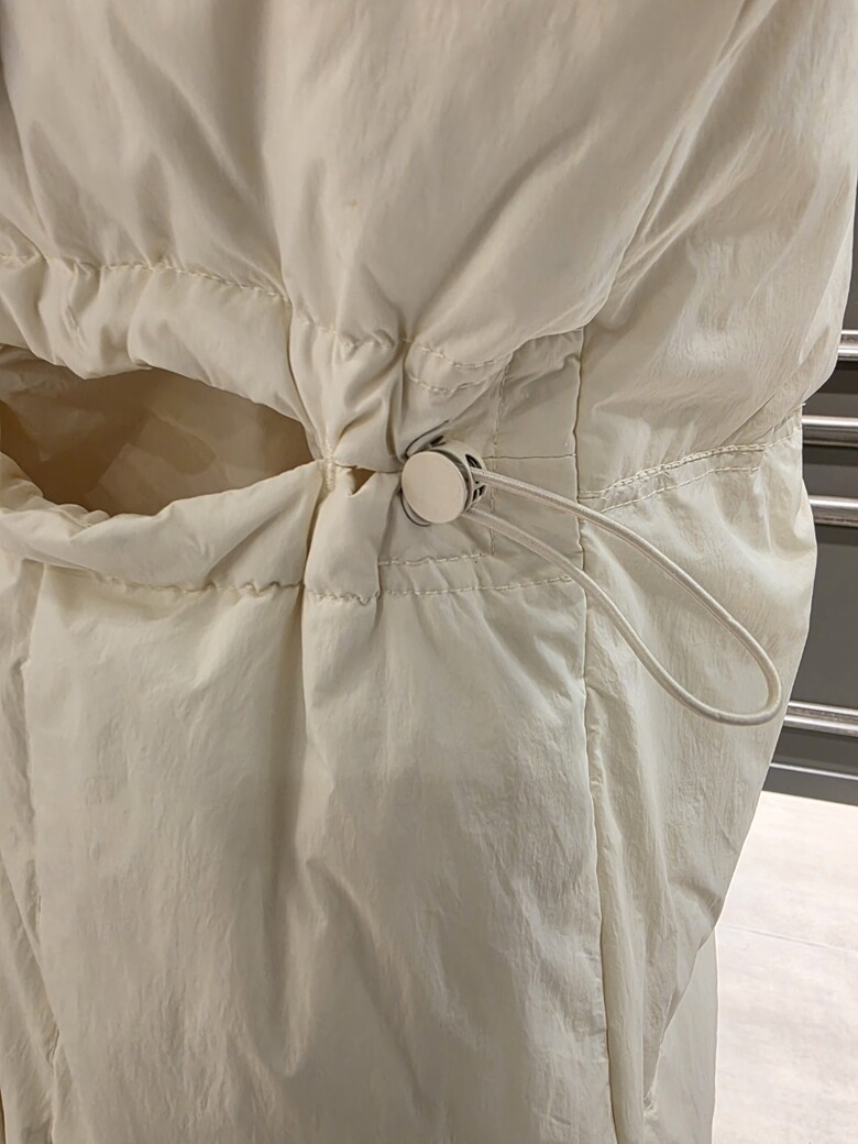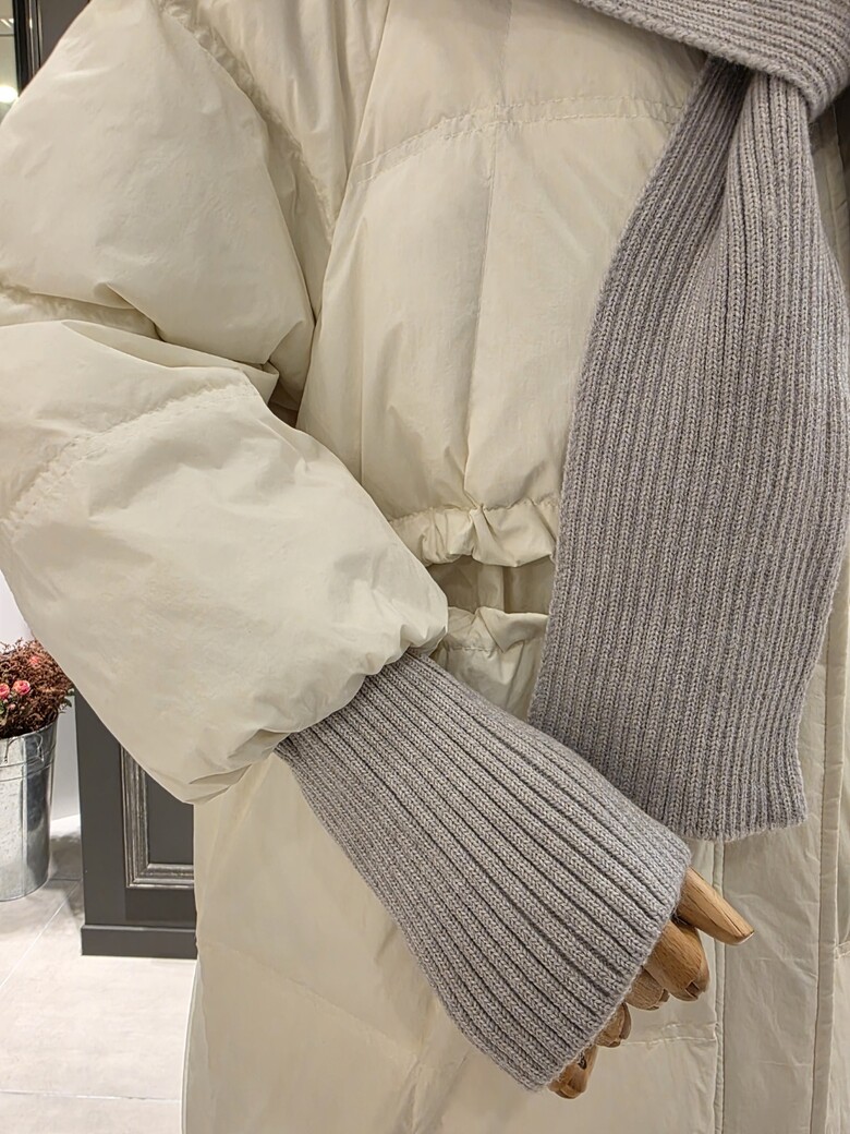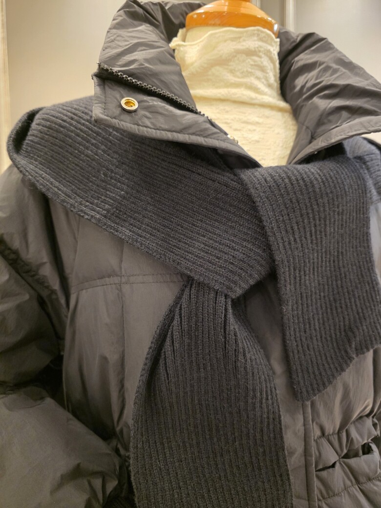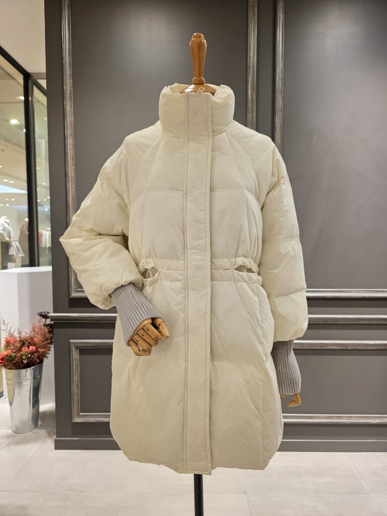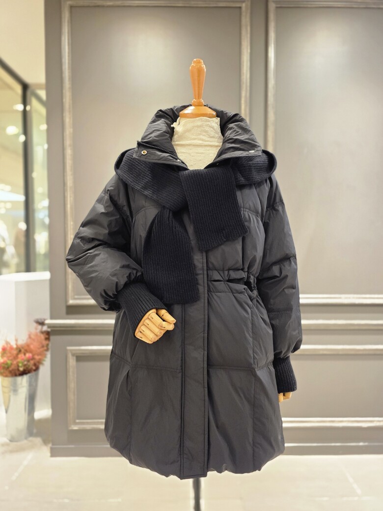 바라클라바와 소매는 니트소재로 배색 되어 있으며 충전재는 덕다운을 사용하여