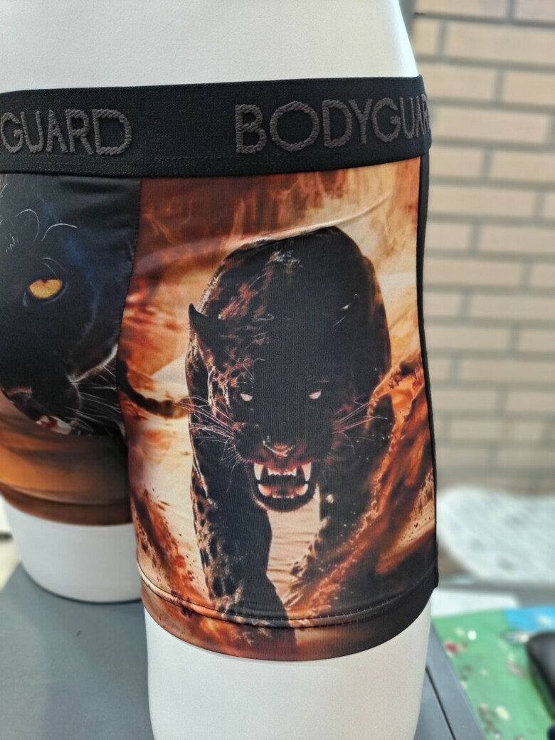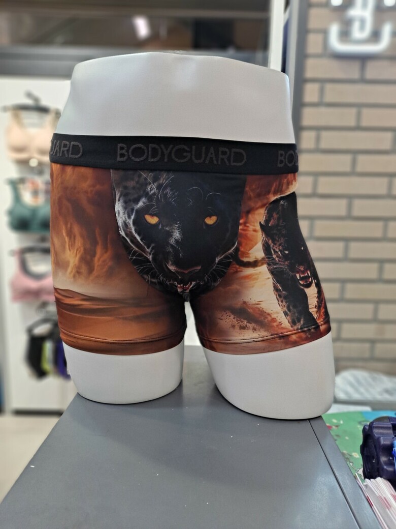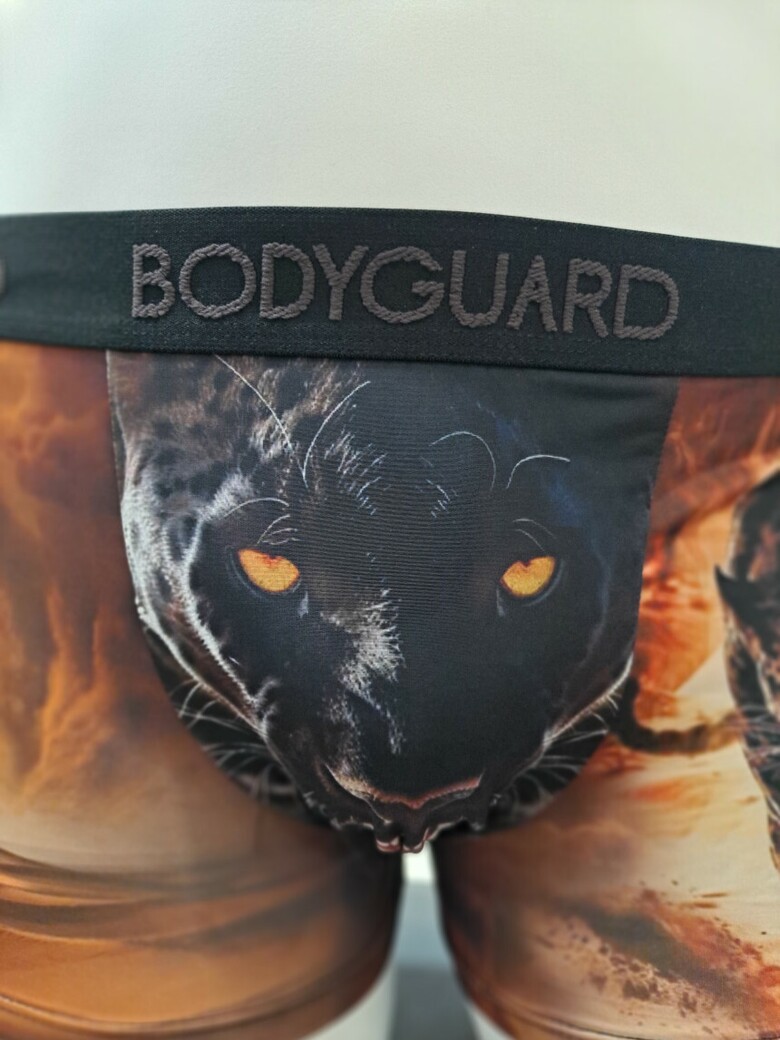 남성아웃밴드 드로즈 제품으로 포효하는 흑표범이 사막에서 달리는 모습으로 와일드하게 연출한 제품. 실제 사진을 보는 듯한 고퀄리티 제품으로 남성성을 강조하는 제품.
