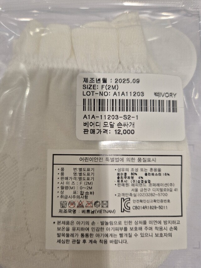 베어디 모달 손싸개 A1A11203