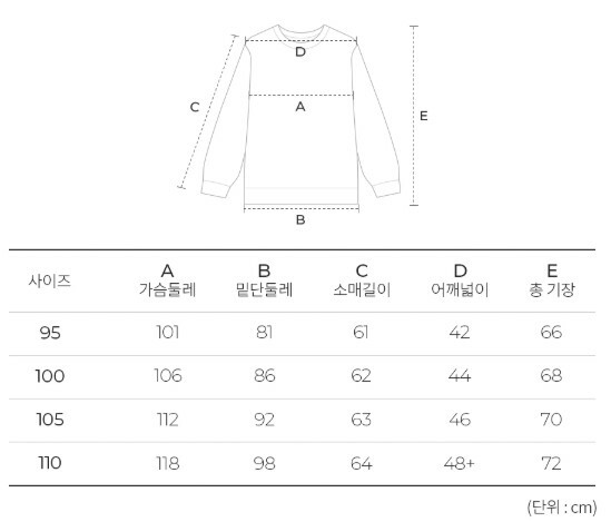 사이즈 단위는 cm이며,재는 위치에 따라 1~3cm사이즈 오차가