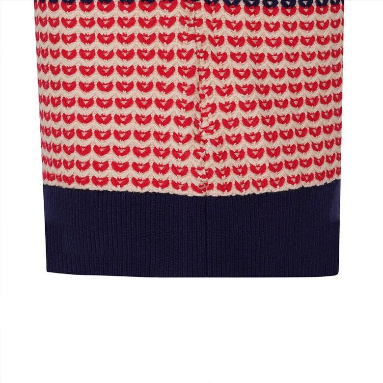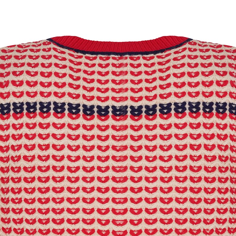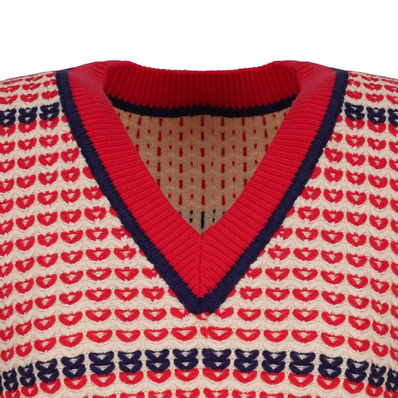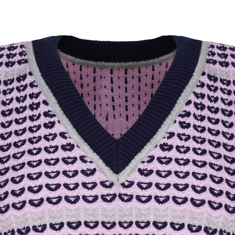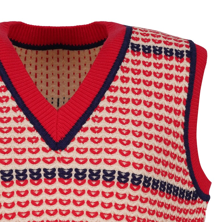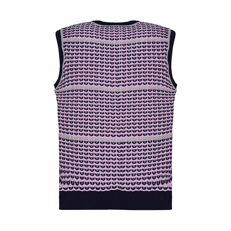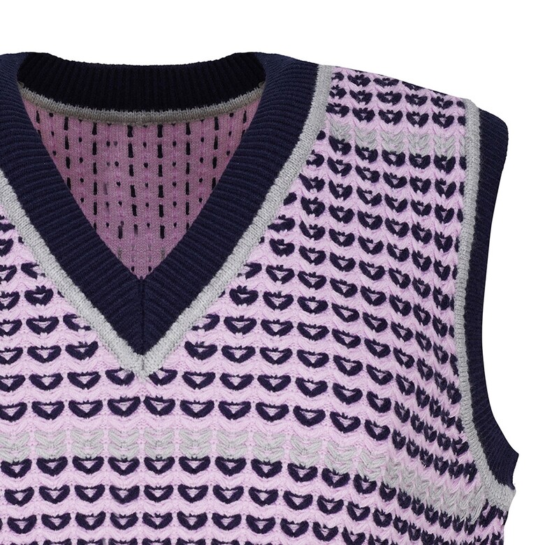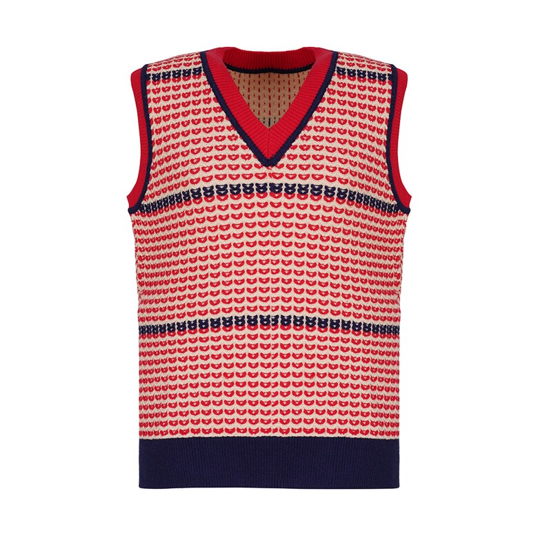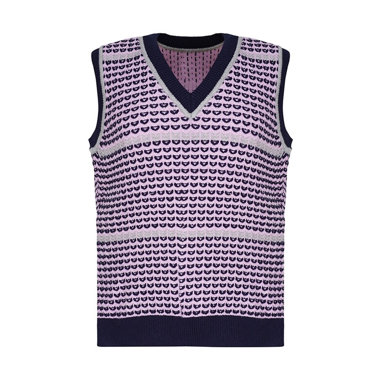 전판 하트무늬 자카드와 컬러배색이 포인트인 캐주얼한 브이넥 풀오버 베스트