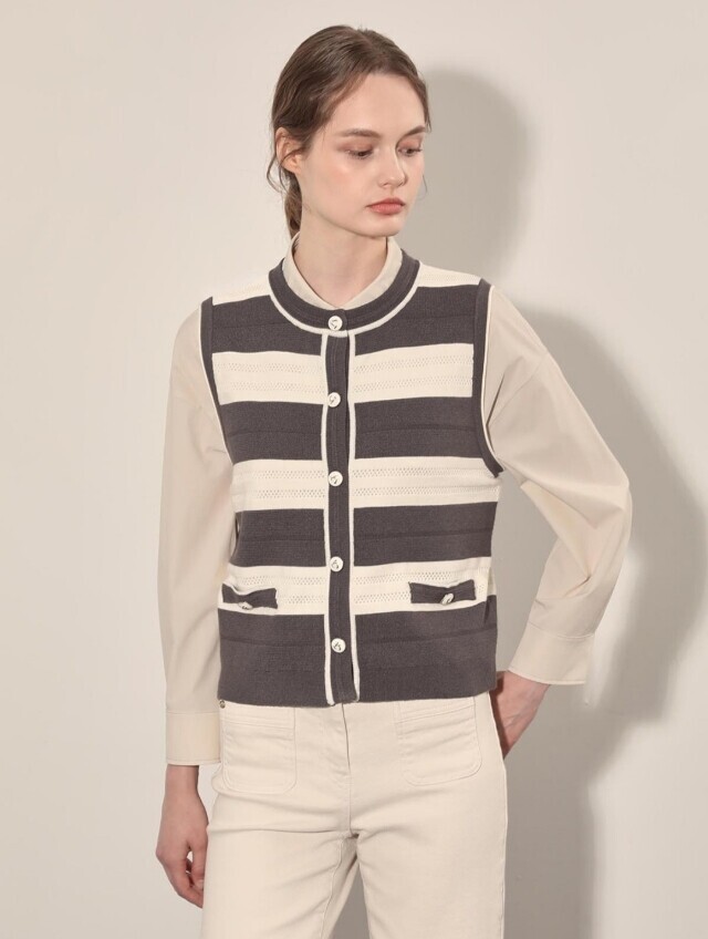 [올리비아로렌]스트라이프 베스트VOCBN4W9111