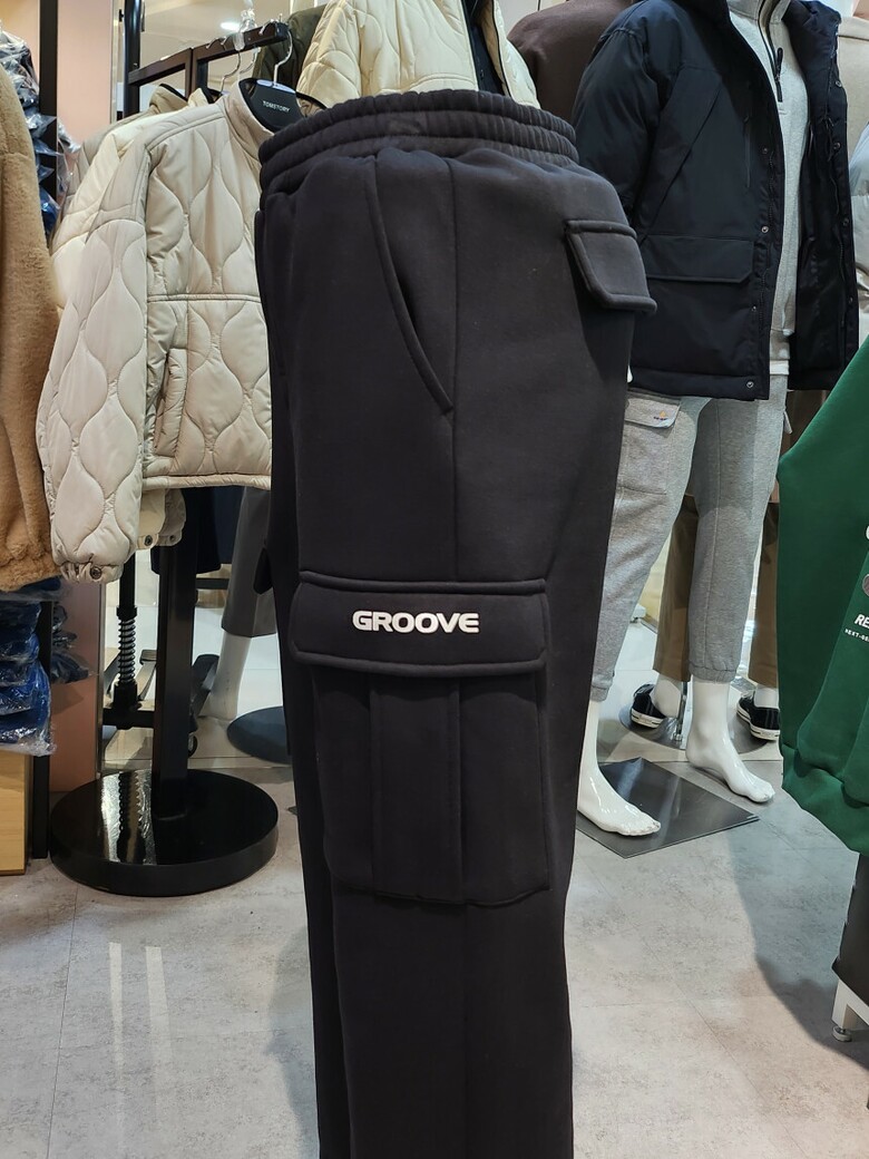 와이드 카고 기모 밴딩 바지 입니다