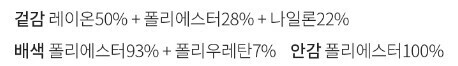· 겉감 : 레이온 50%,폴리에스터 28%,나일론 22%