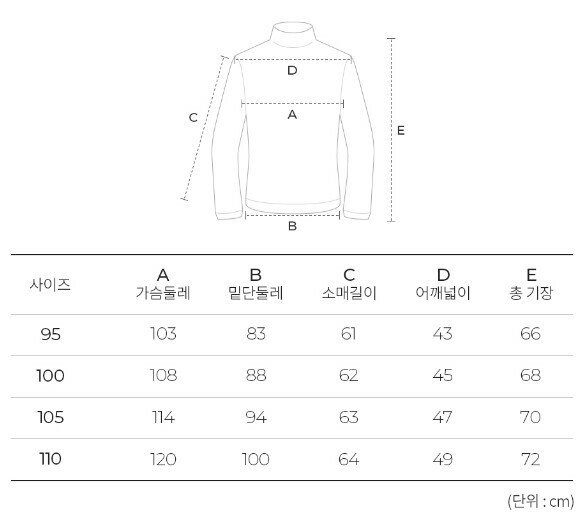 사이즈 단위는 cm이며,재는 위치에 따라 1~3cm사이즈 오차가