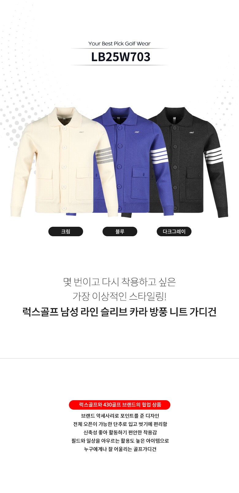 골피아 LB25W703 남성 라인 슬리브 카라 방풍 니트 가디건