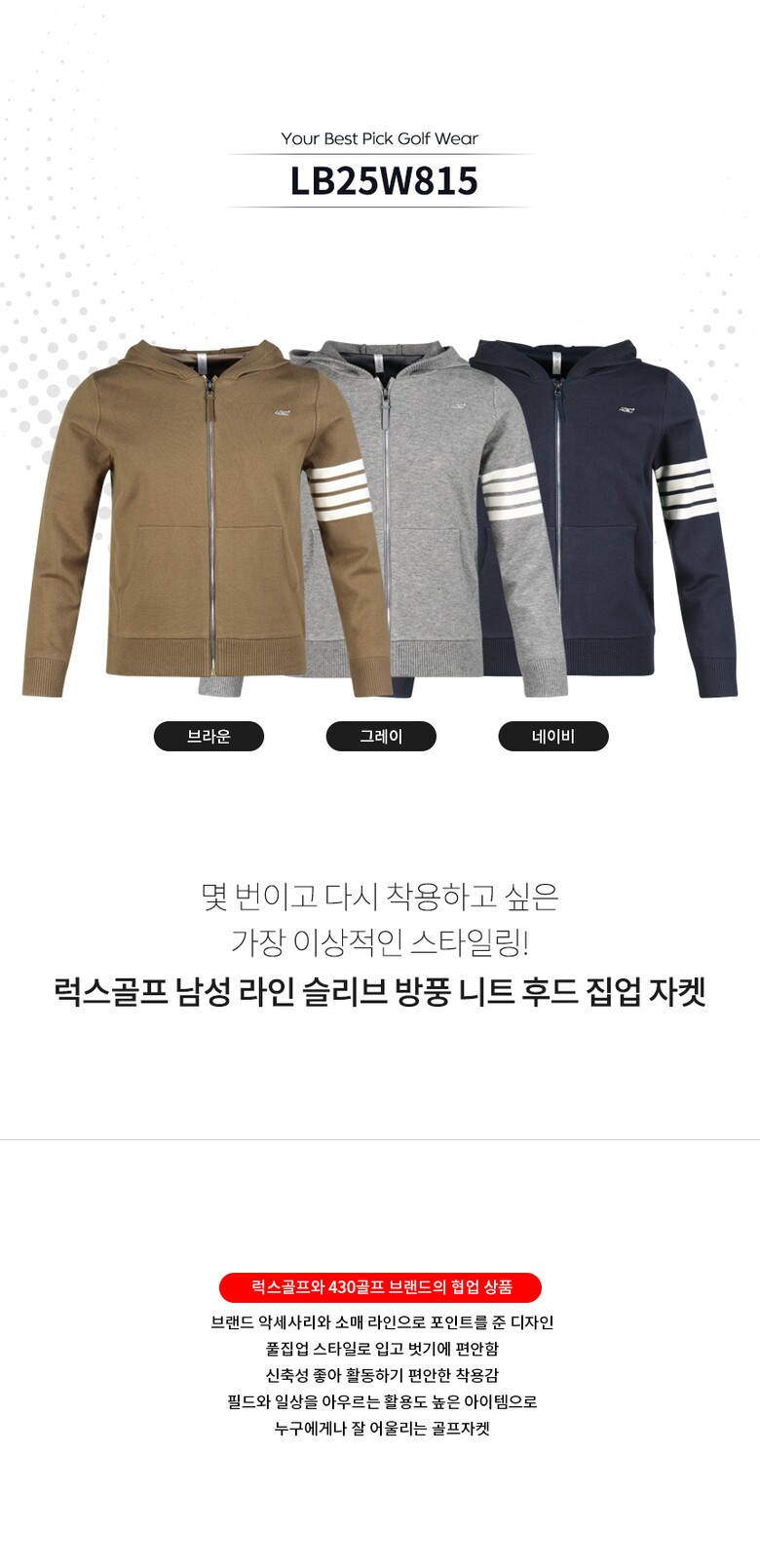 골피아 LB25W815 남성 라인 슬리브 방풍 니트 후드 집업 자켓