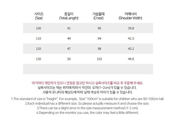 사이즈 : 100,110,120,130