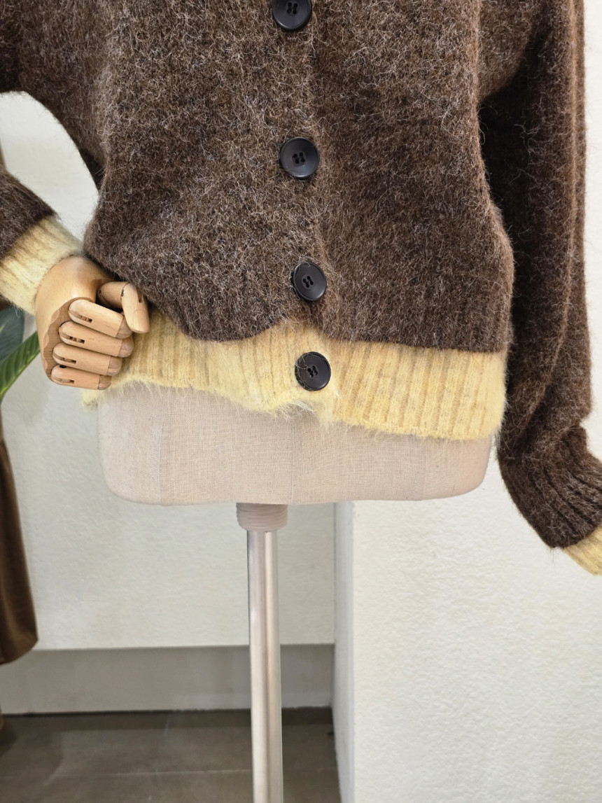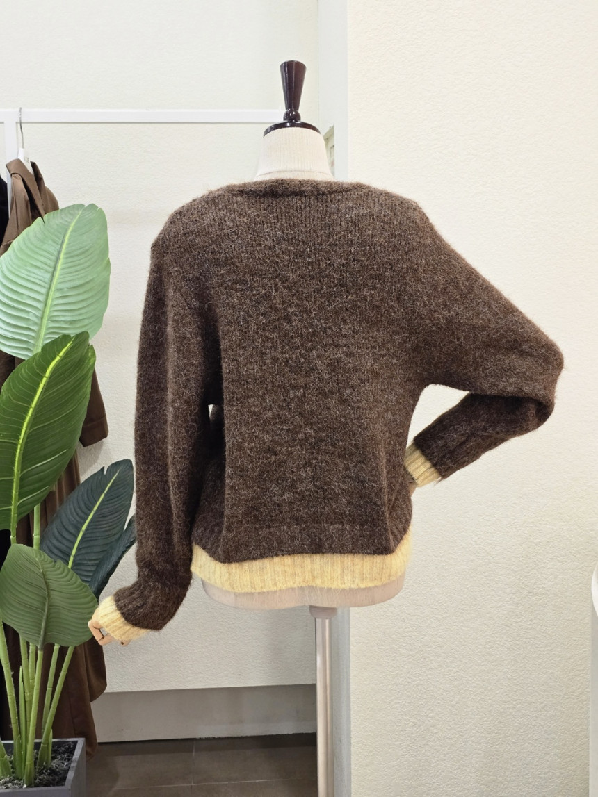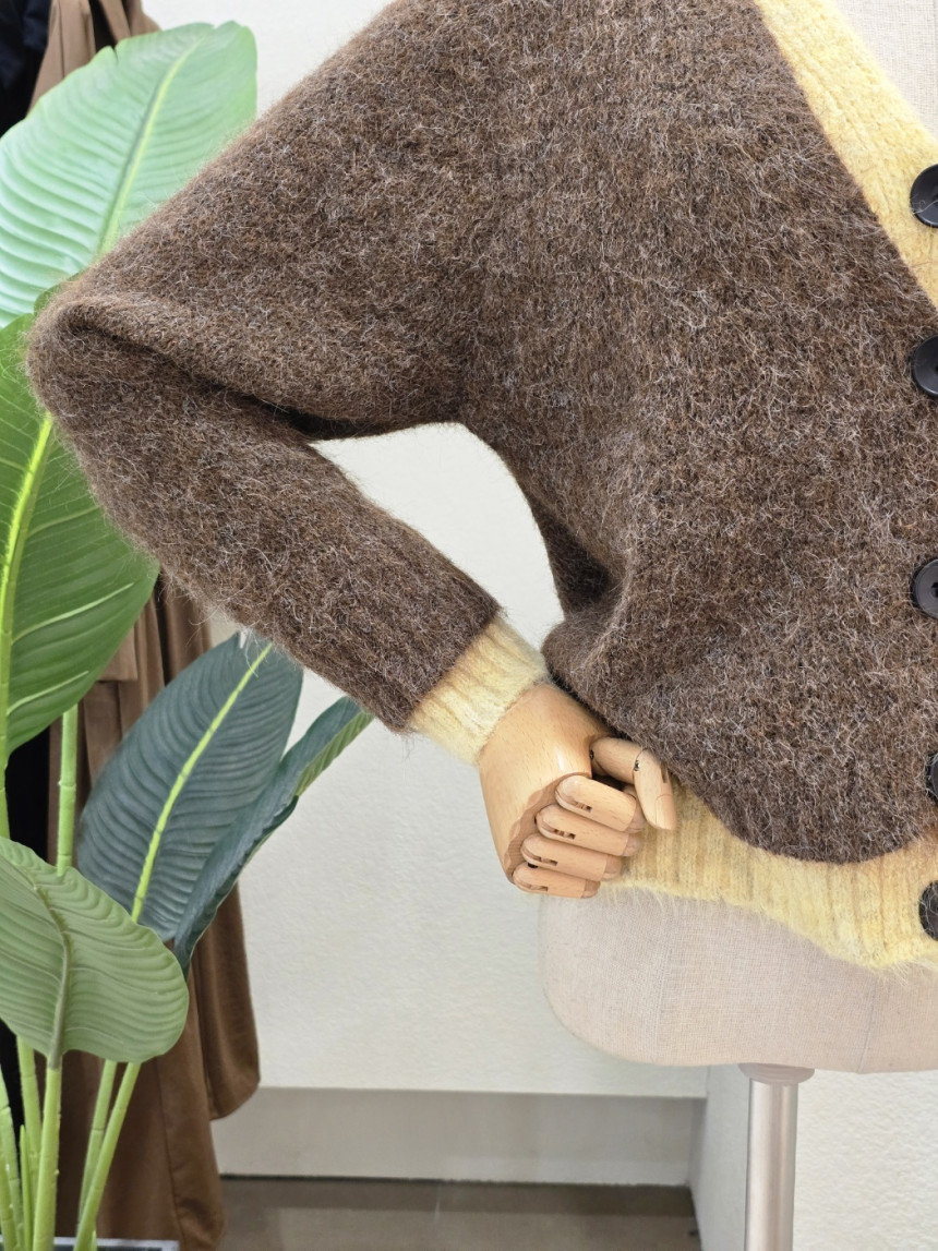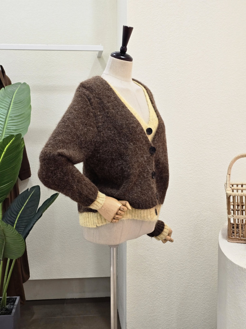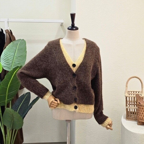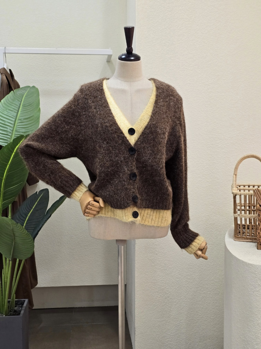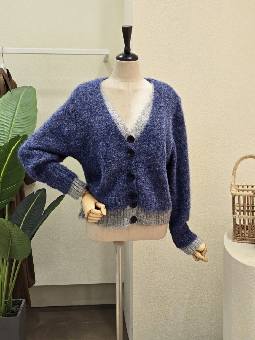 FW5J3KC31696_투톤 레이어드 브이넥 가디건
