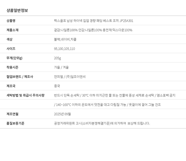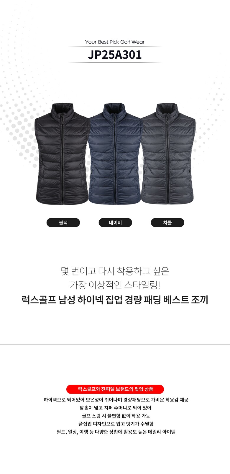 럭스골프 남성 하이넥 집업 경량 패딩 베스트 조끼 JP25A301