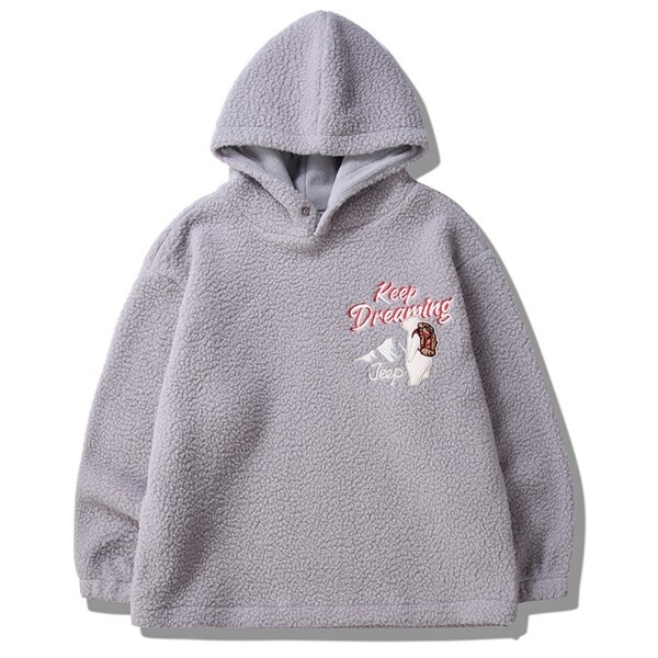 KP4THU401_뽀글이 곰 후드티셔츠 GR