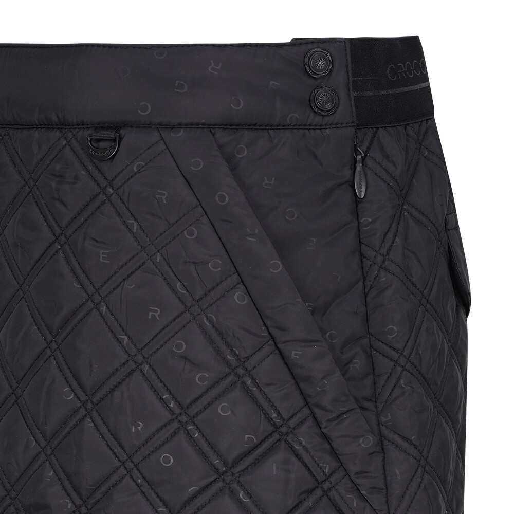 로고 프린트 원단에 변형 다이아 퀼팅의 패딩 스커트로 뒤 밴드가 있어 착용이 편리하며|*| 지퍼 포켓으로 수납이 용이한 아이템. CLCWVT201과 셋업 상품.