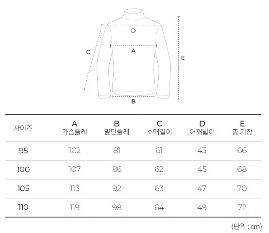 사이즈 단위는 cm이며,재는 위치에 따라 1~3cm사이즈 오차가