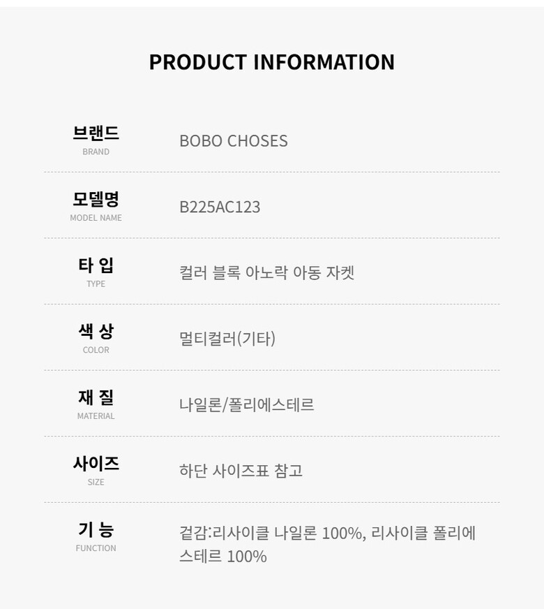 보보쇼즈 B225AC123 컬러 블록 아노락 키즈 자켓