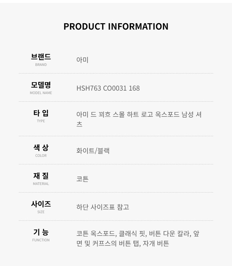 아미 HSH763 CO0031 168 스몰 하트 로고 옥스포드 남성 셔츠