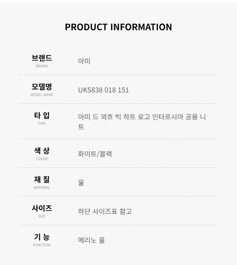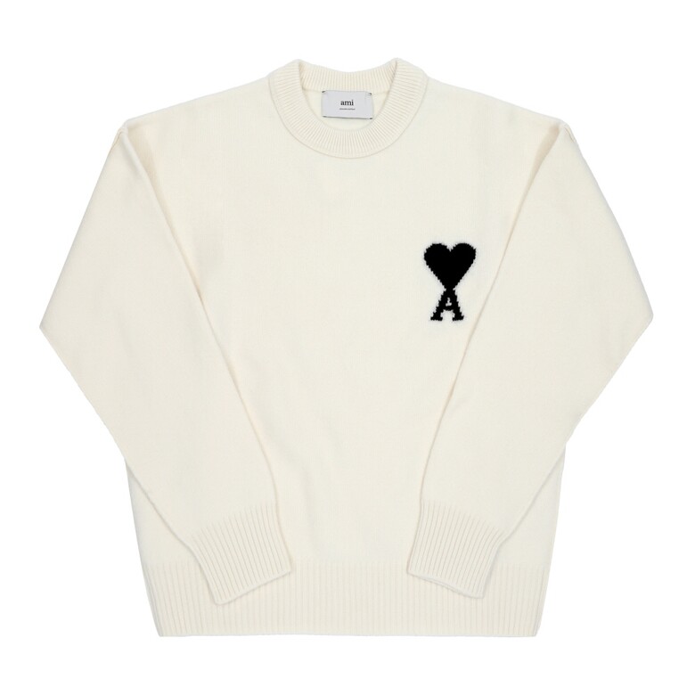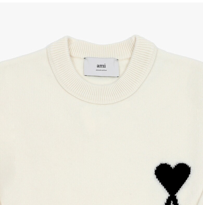 아미 UKS838 018 151 빅 하트 로고 인타르시아 공용 니트