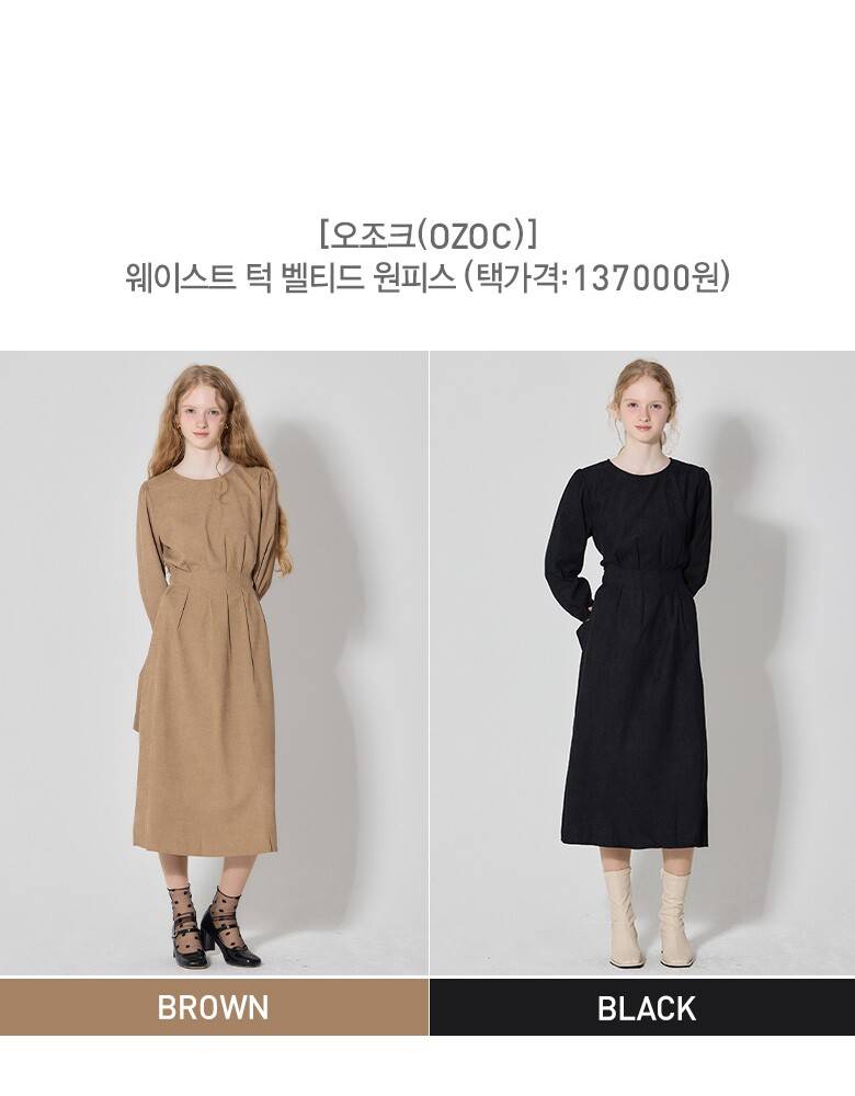 [오조크(OZOC)] 웨이스트 턱 원피스 (택가격: 137000원)