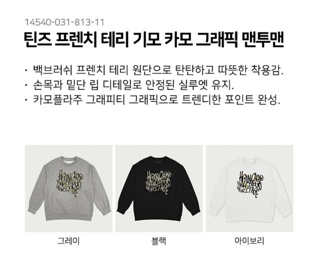 | 1. 제품 소재 (섬유의 조성 또는 혼용률을 백분율로 표시, 기능성인 경우 성적서 또는 허가서) | 상품상세참조 |