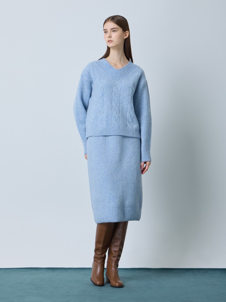 같은 소재의 C244-KSK039 니트 풀오버와 셋업 스타일링이 가능합니다.