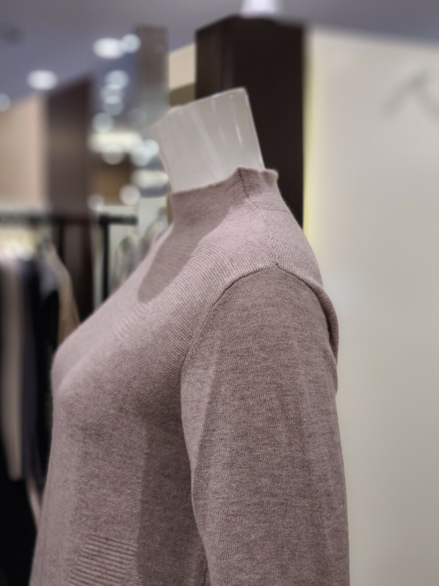 긴팔 기장의 목폴라 니트는 봄과 가을에는 단독으로, 겨울에는 코트나