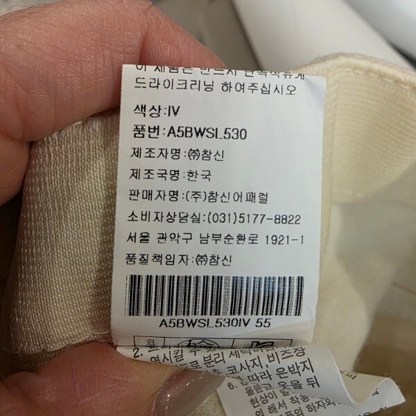 제조자 : (주)참신어패럴