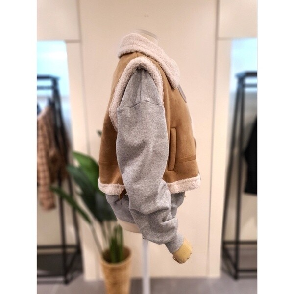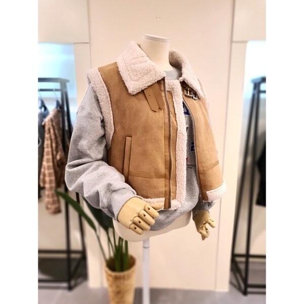 부드러운 스웨이드 원단의 무스탕 집업 베스트입니다.