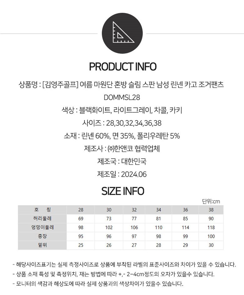 [김영주골프] 여름 마원단 혼방 슬림 스판 남성 린넨 카고 조거팬츠 DOMMSL28