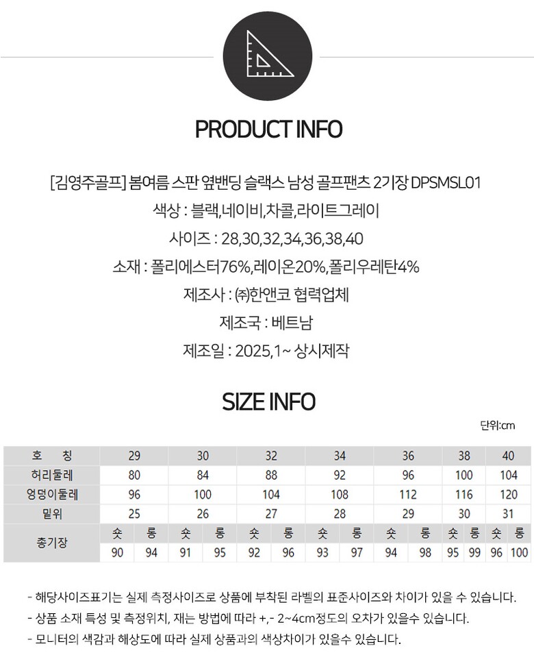 [김영주골프] 봄여름 스판 옆밴딩 슬랙스 남성 골프팬츠 2기장 DPSMSL01