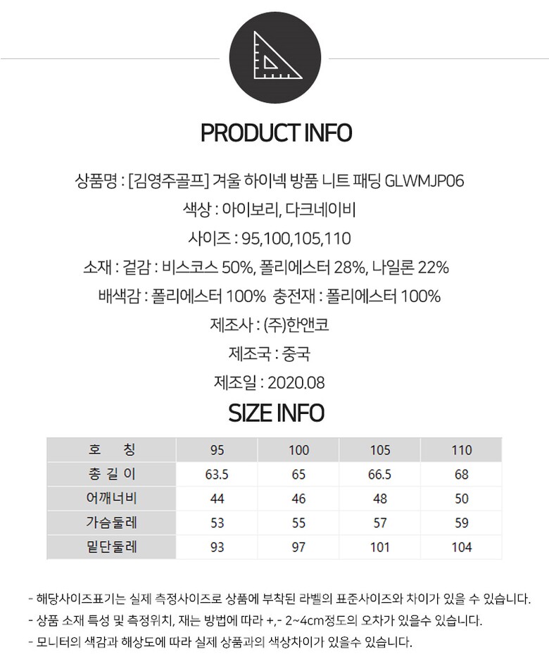 [김영주골프] 겨울 하이넥 방풍 니트 패딩 GLWMJP06