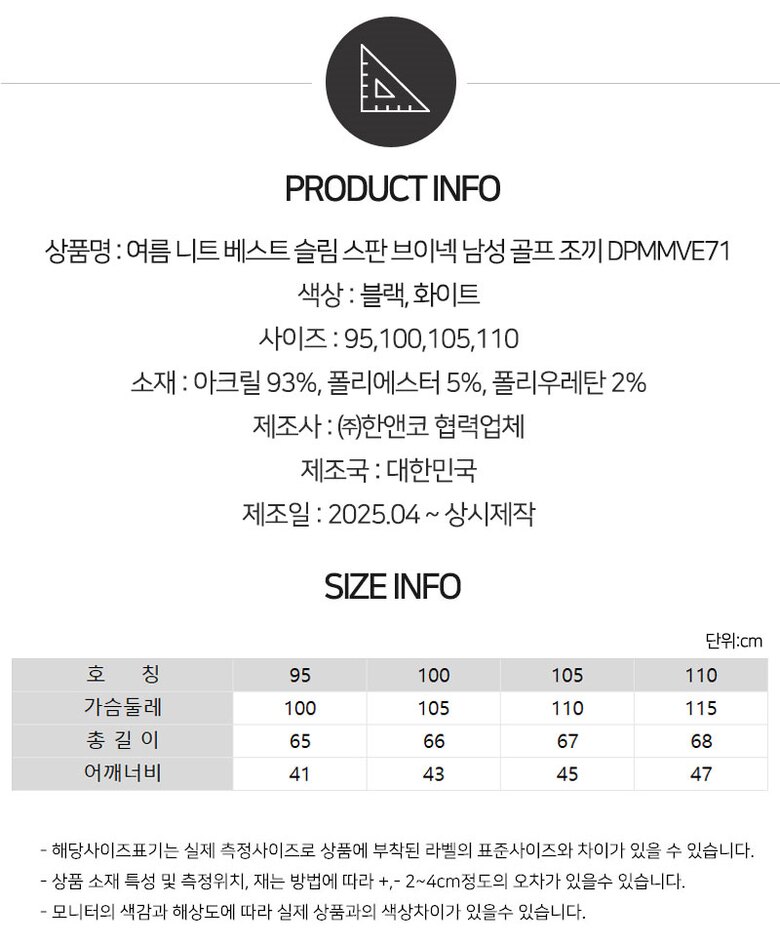 [김영주골프] 여름 니트 베스트 슬림 스판 브이넥 남성 골프 조끼 DPMMVE71