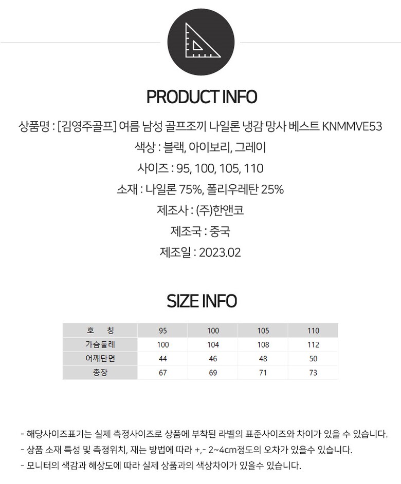 [김영주골프] 여름 남성 골프조끼 나일론 냉감 망사 베스트 KNMMVE53