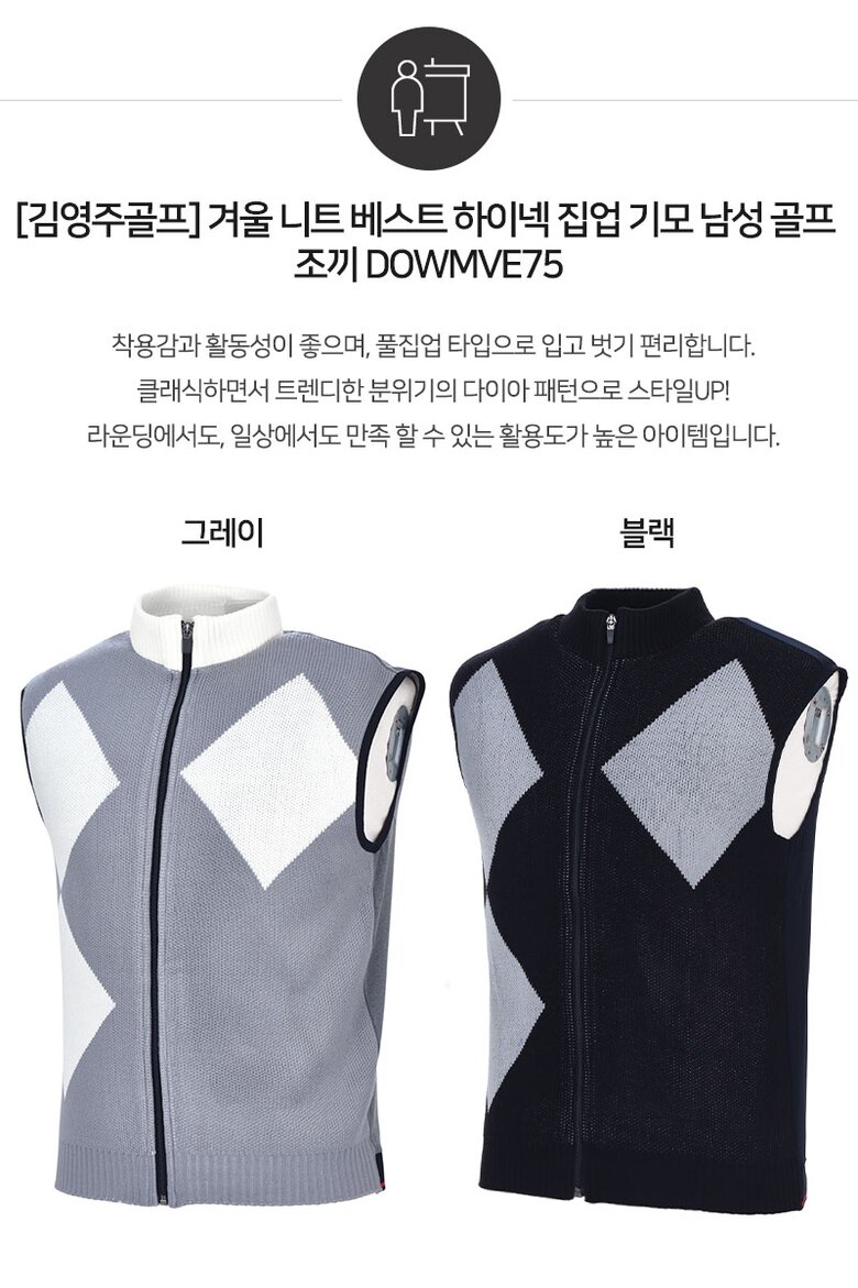 [김영주골프] 겨울 니트 베스트 하이넥 집업 기모 남성 골프 조끼 DOWMVE75
