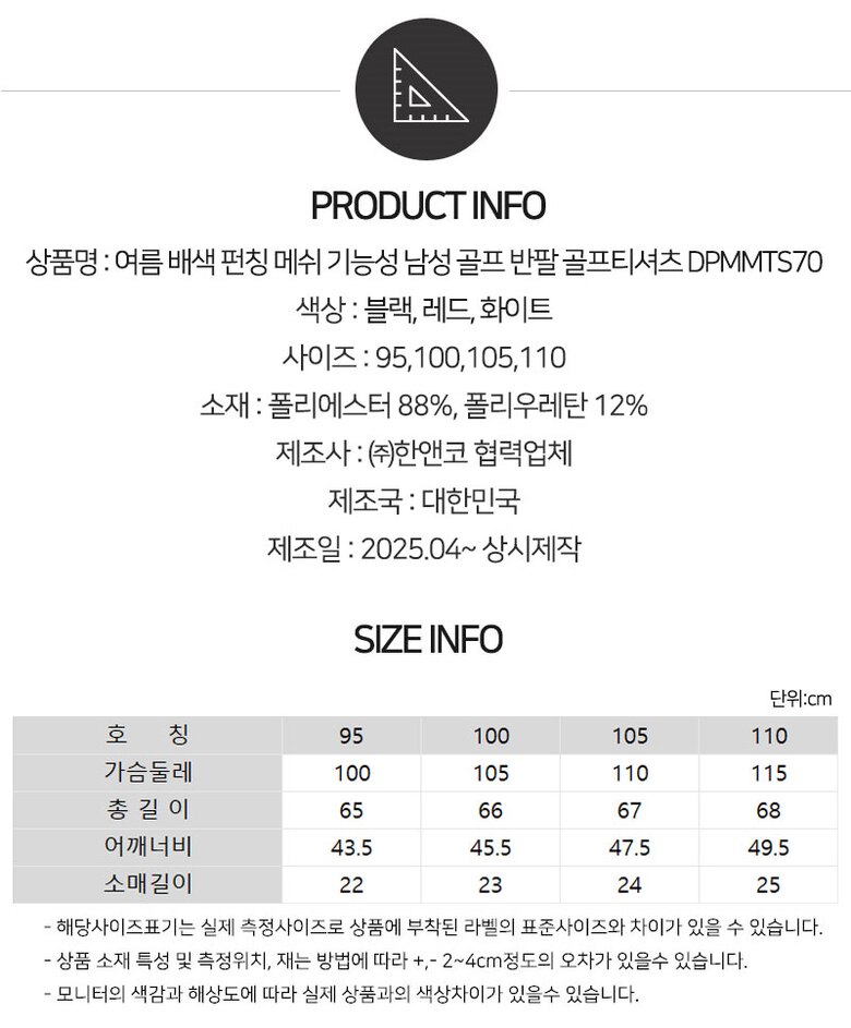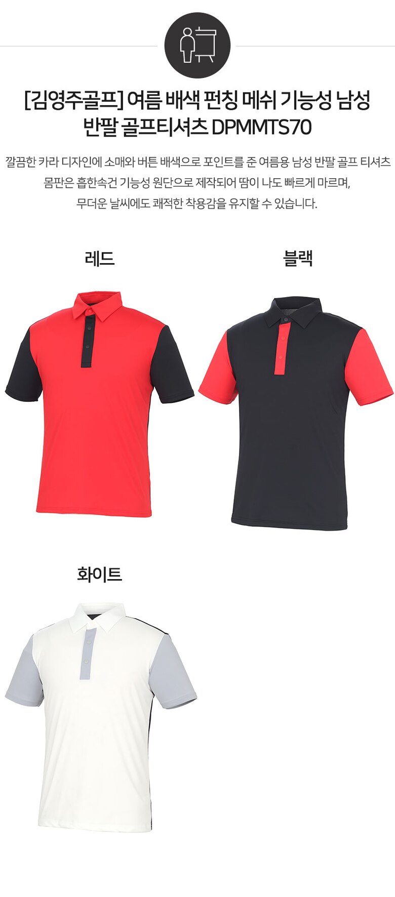 [김영주골프] 여름 배색 펀칭 메쉬 기능성 남성 반팔 골프티셔츠 DPMMTS70