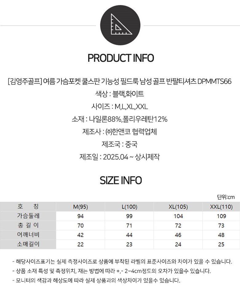[김영주골프] 여름 가슴포켓 쿨스판 기능성 필드룩 남성 골프 반팔티셔츠 DPMMTS66