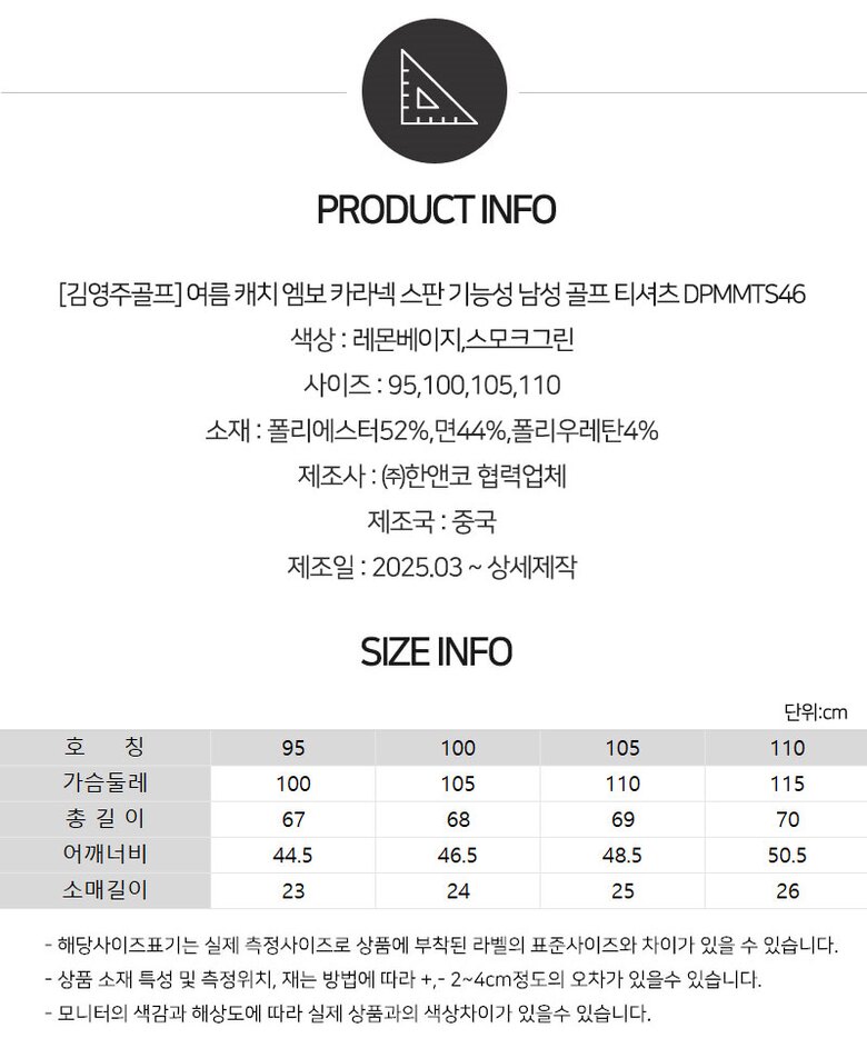[김영주골프] 여름 캐치 엠보 카라넥 스판 기능성 남성 골프 티셔츠 DPMMTS46