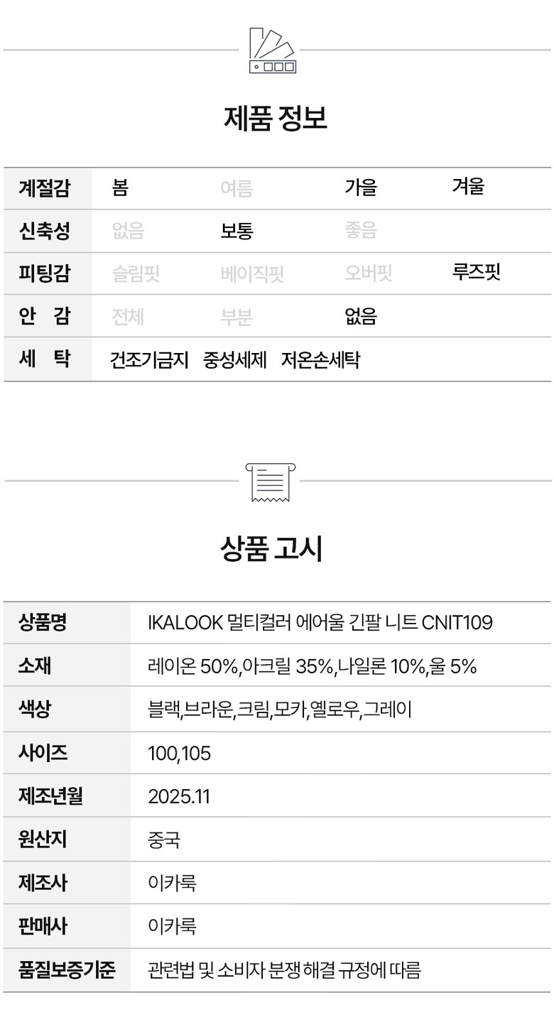 IKALOOK 멀티컬러 에어울 긴팔 니트 CNIT109