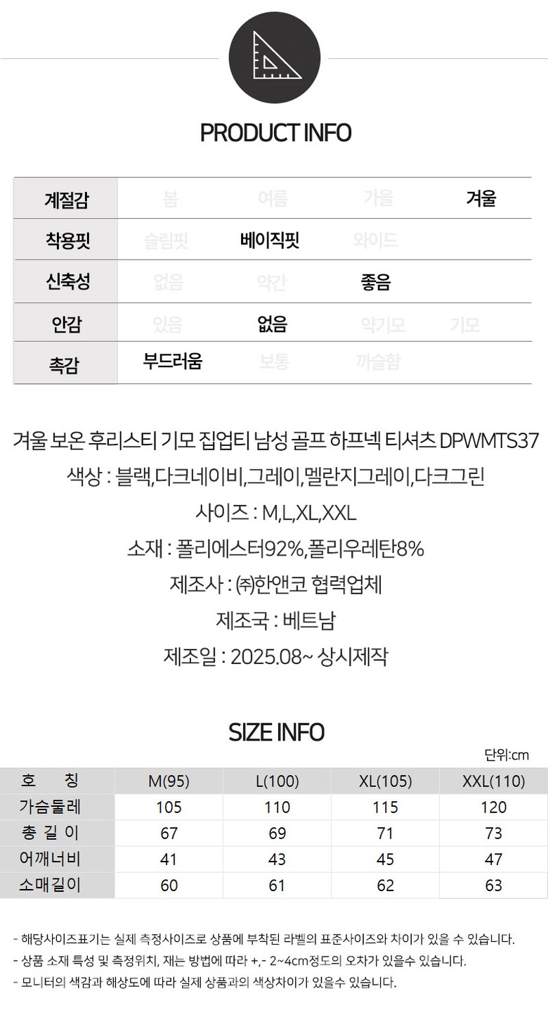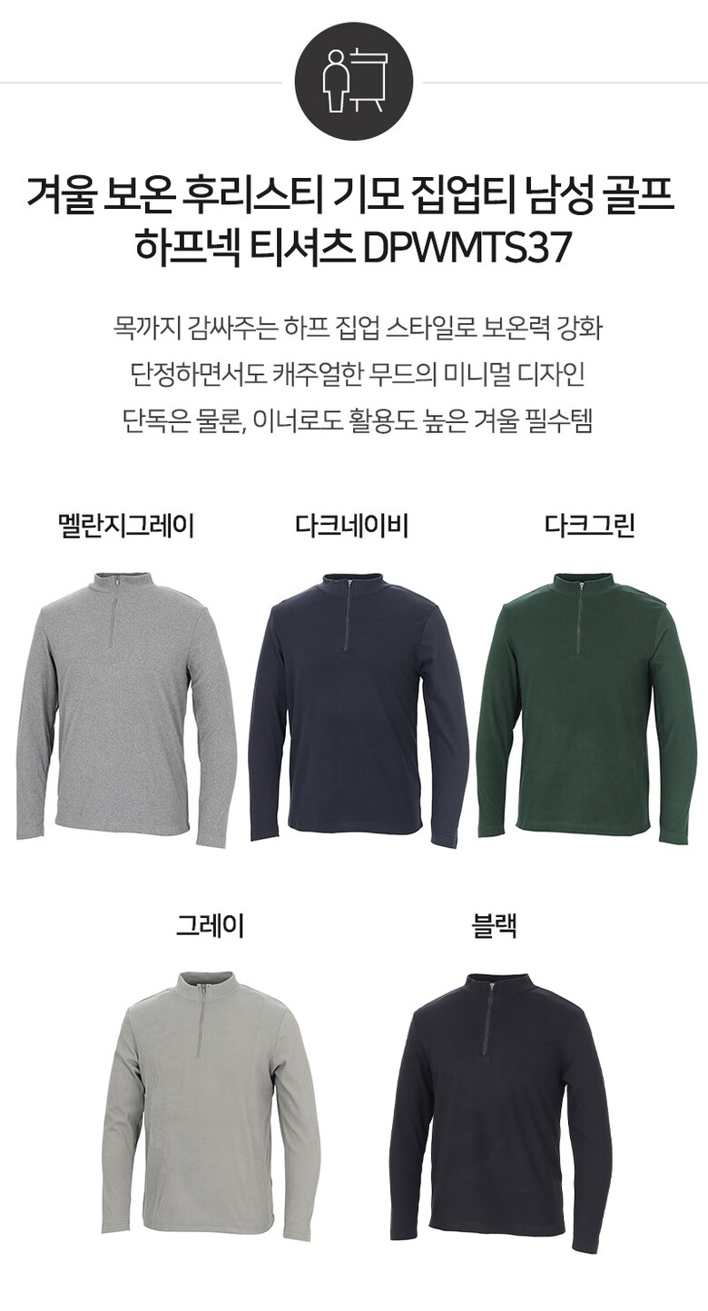 [김영주골프] 겨울 보온 후리스티 기모 집업티 남성 골프 하프넥 티셔츠 DPWMTS37