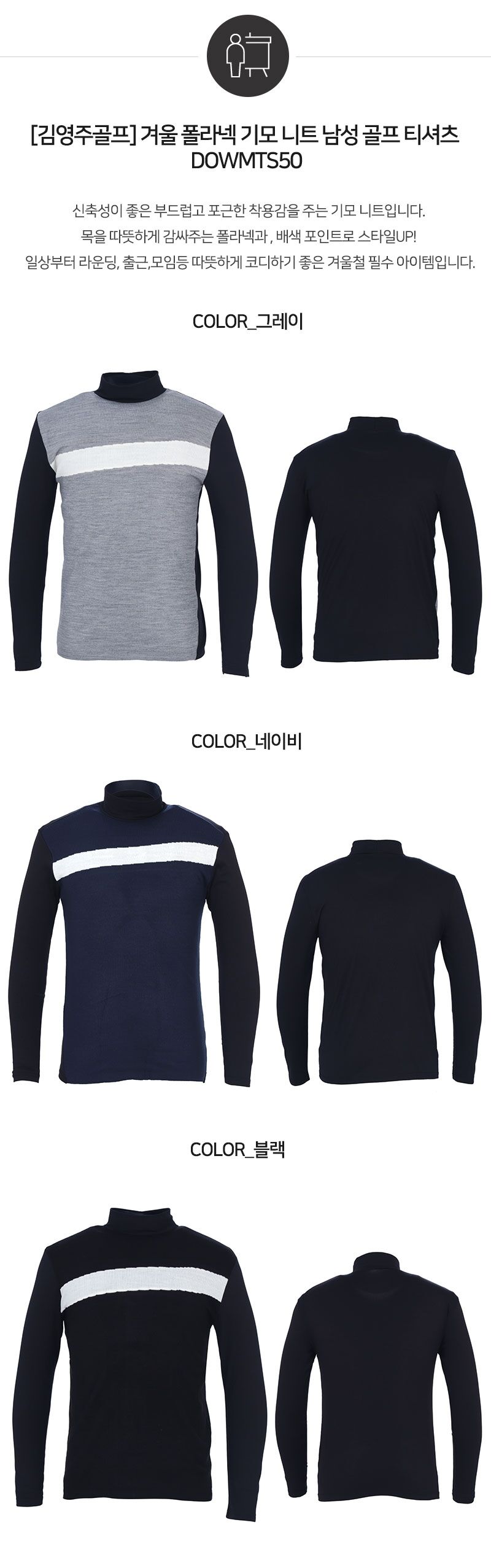 [김영주골프] 겨울 폴라넥 기모 니트 남성 골프 티셔츠 DOWMTS50