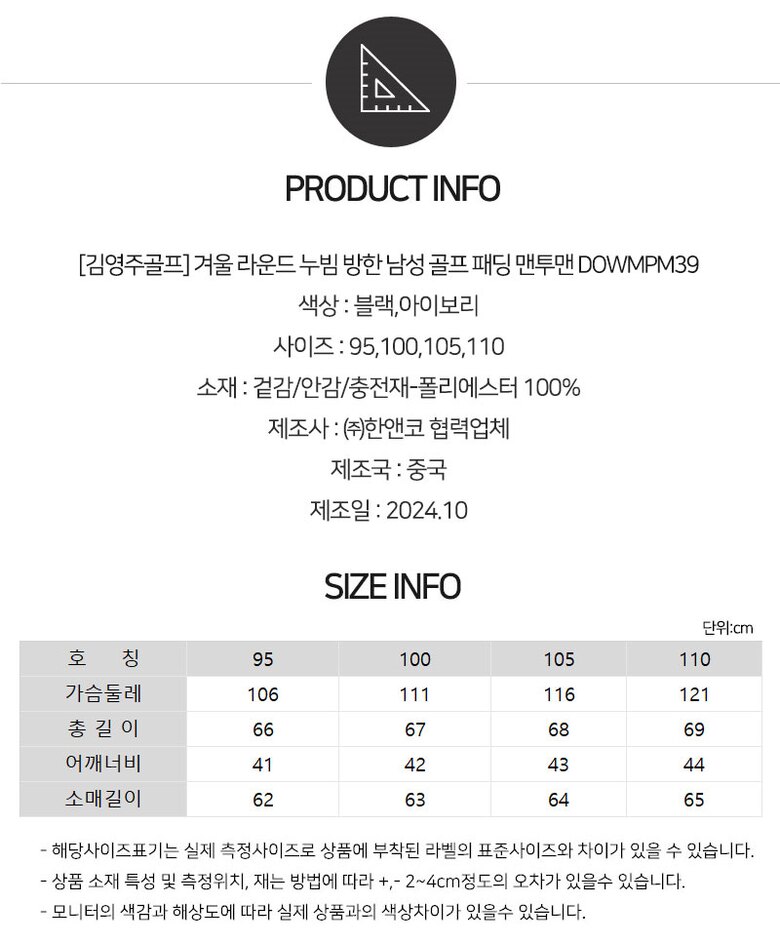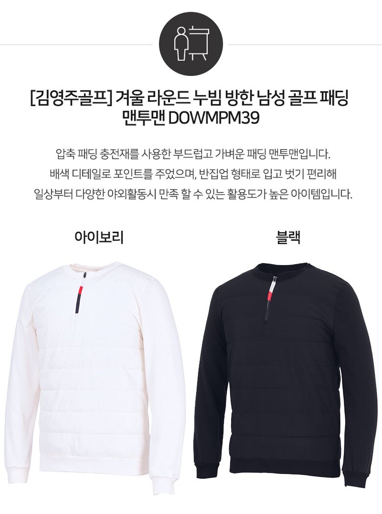 [김영주골프] 겨울 라운드 누빔 방한 남성 골프 패딩 맨투맨 DOWMPM39