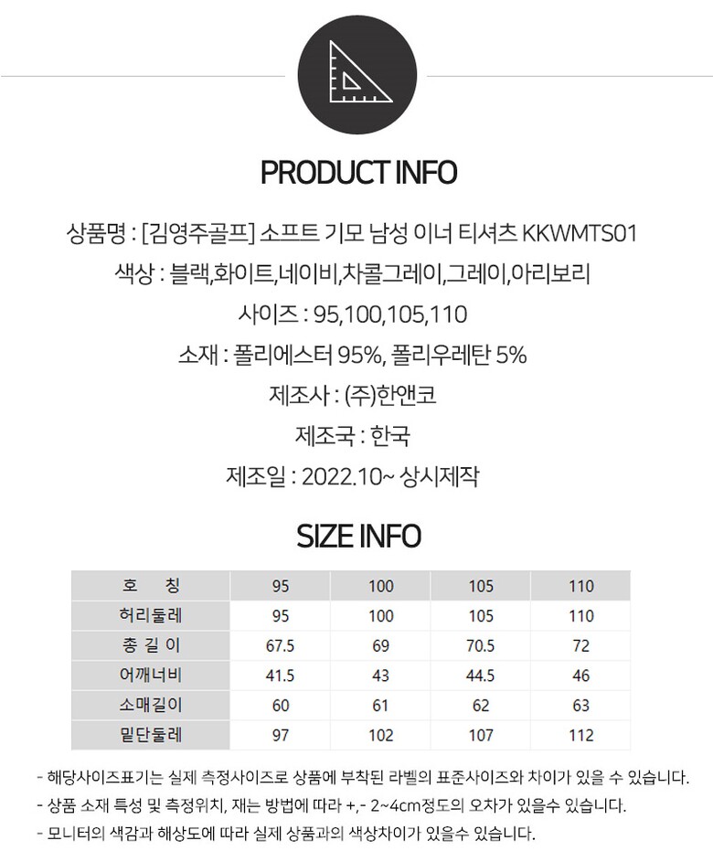 [김영주골프] 소프트 기모 골프이너웨어 남성 이너티셔츠 KKWMTS01