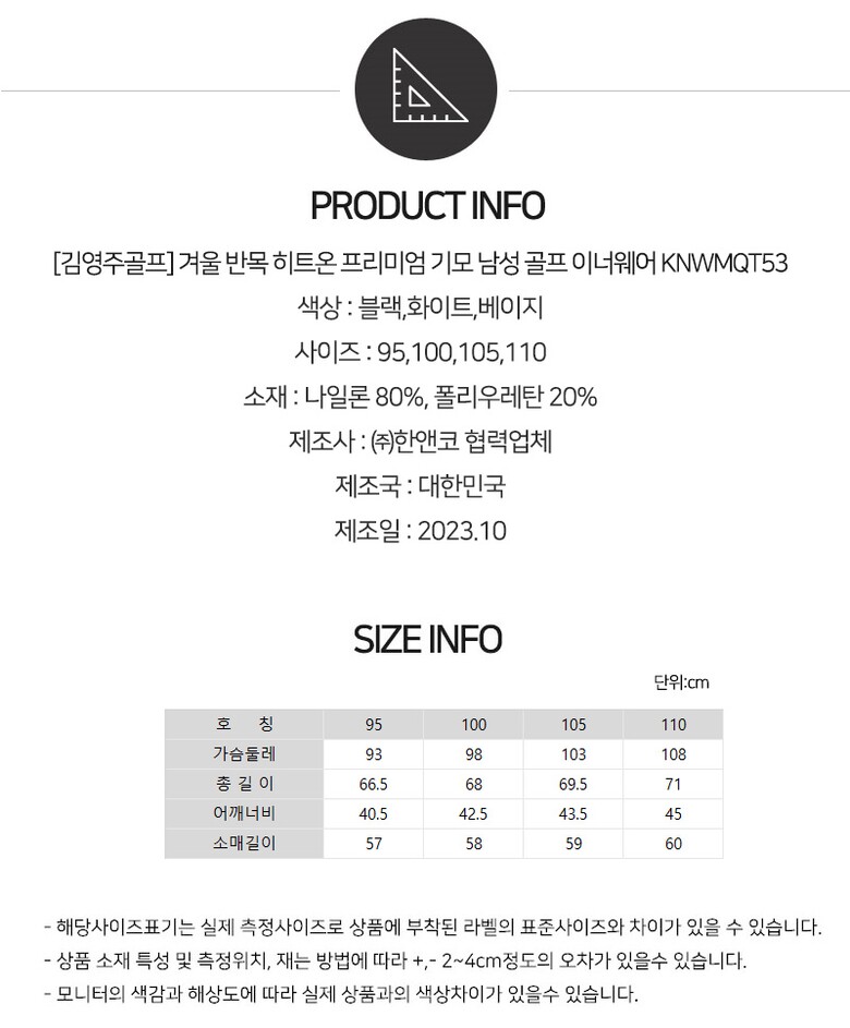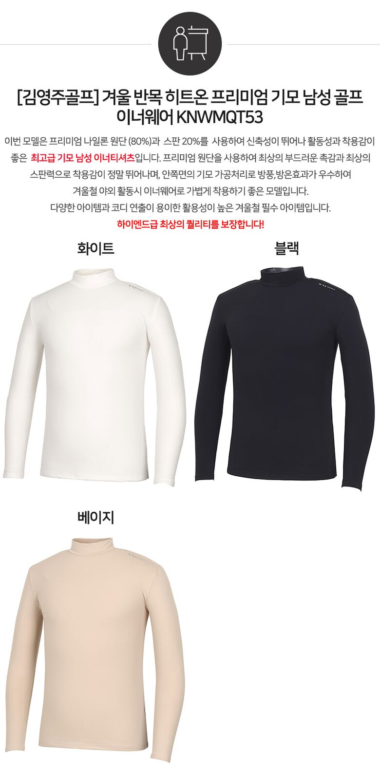 [김영주골프] 겨울 반목 히트온 프리미엄 기모 남성 골프 이너웨어 KNWMQT53