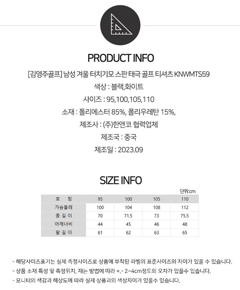 [김영주골프] 남성 겨울 터치기모 스판 태극 골프 티셔츠 KNWMTS59