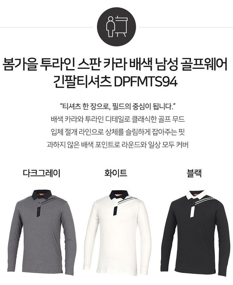 [김영주골프] 봄가을 투라인 스판 카라 배색 남성 골프웨어 긴팔티셔츠 DPFMTS94
